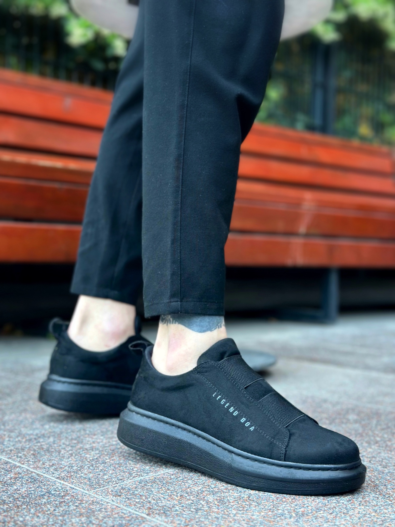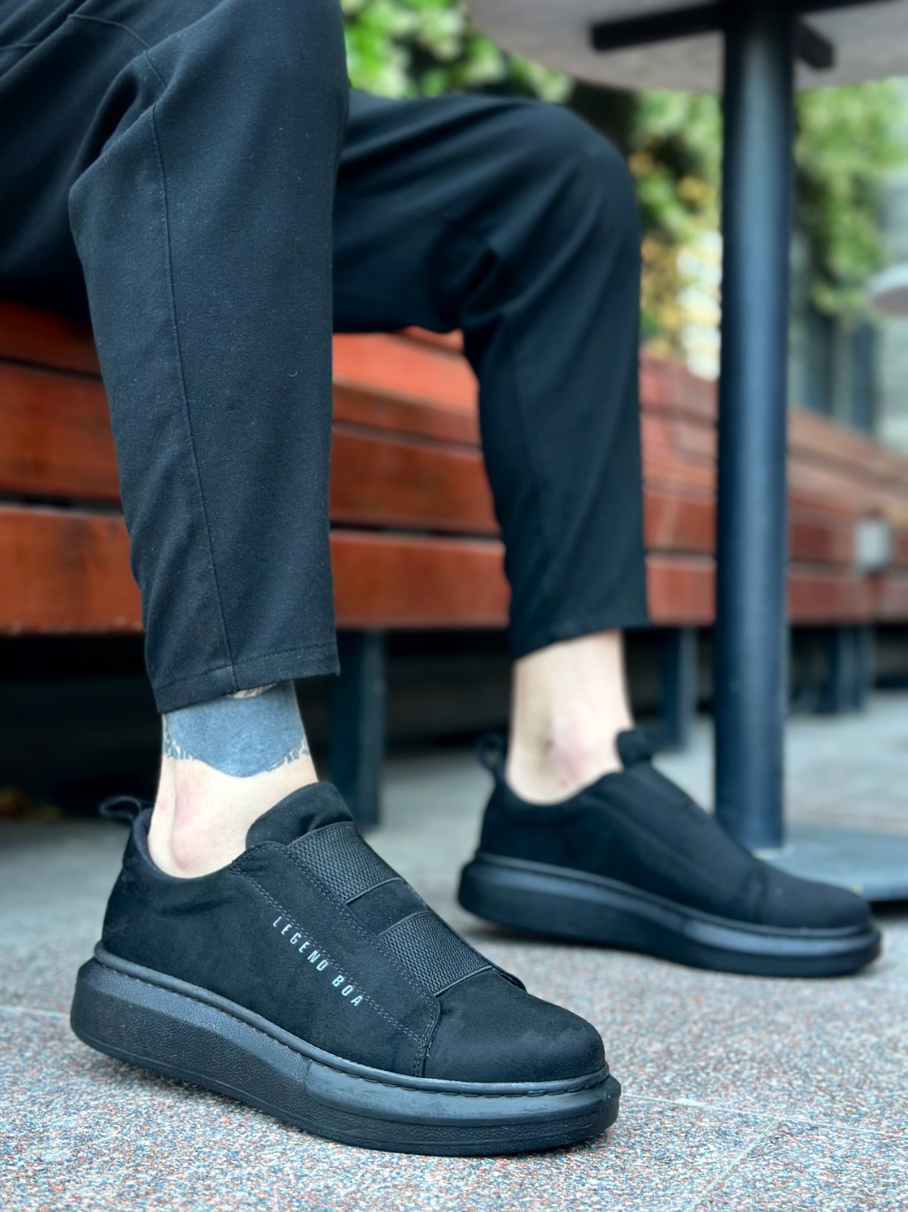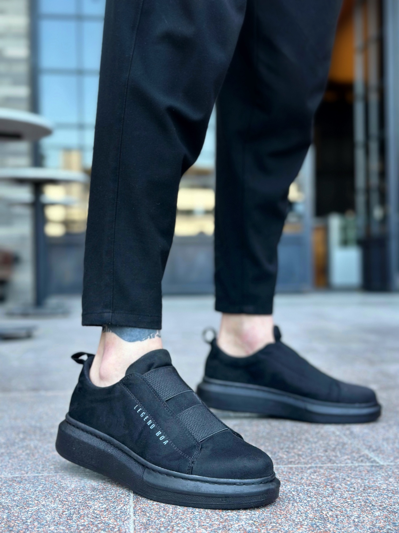 • BA0307 BOA Kalın Süet Yüksek Taban Çift Bant Siyah Erkek Ayakkabı
