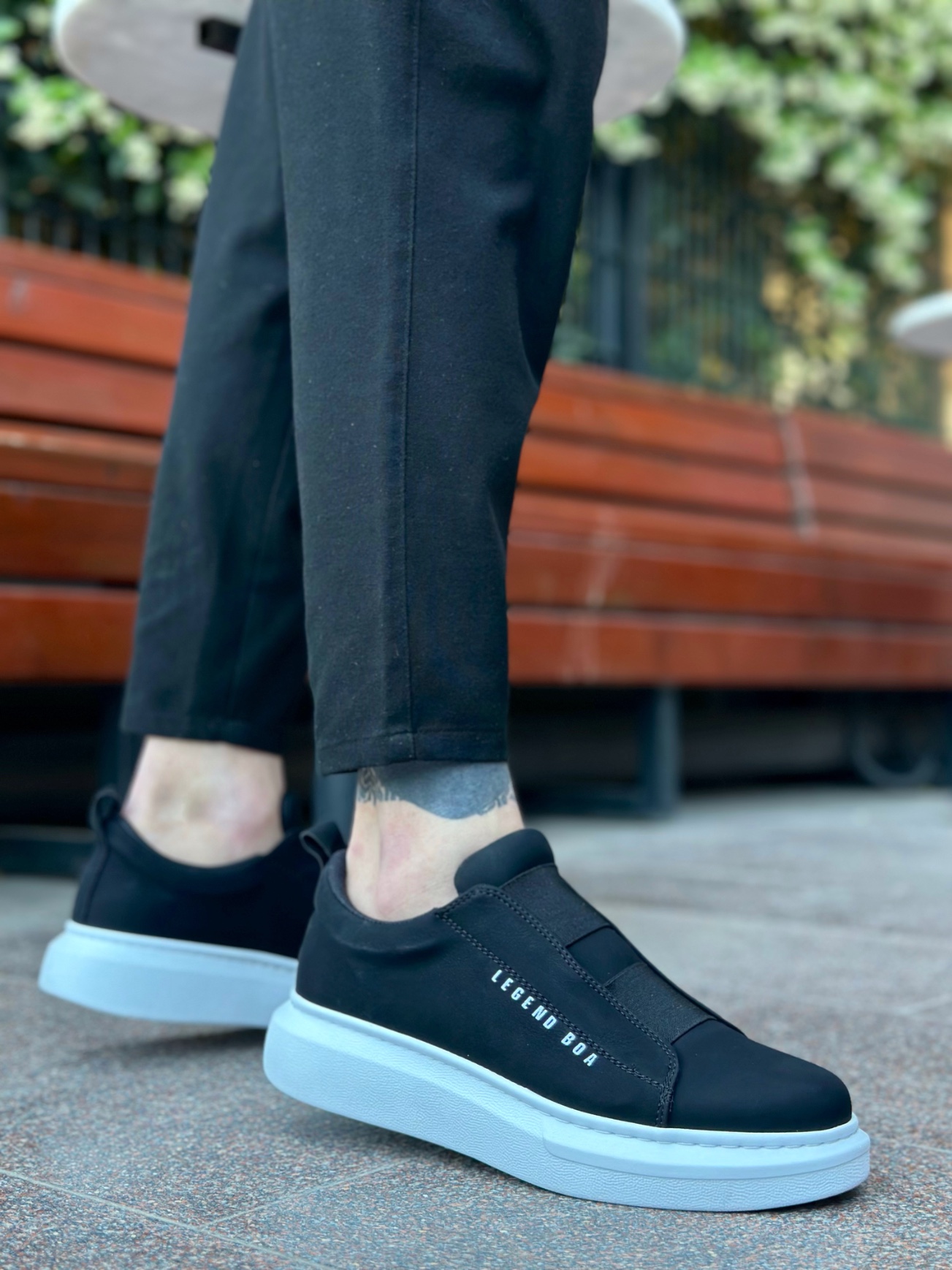 BA0307 BOA Kalın Yüksek Taban Çift Bant Siyah Beyaz Erkek Ayakkabı