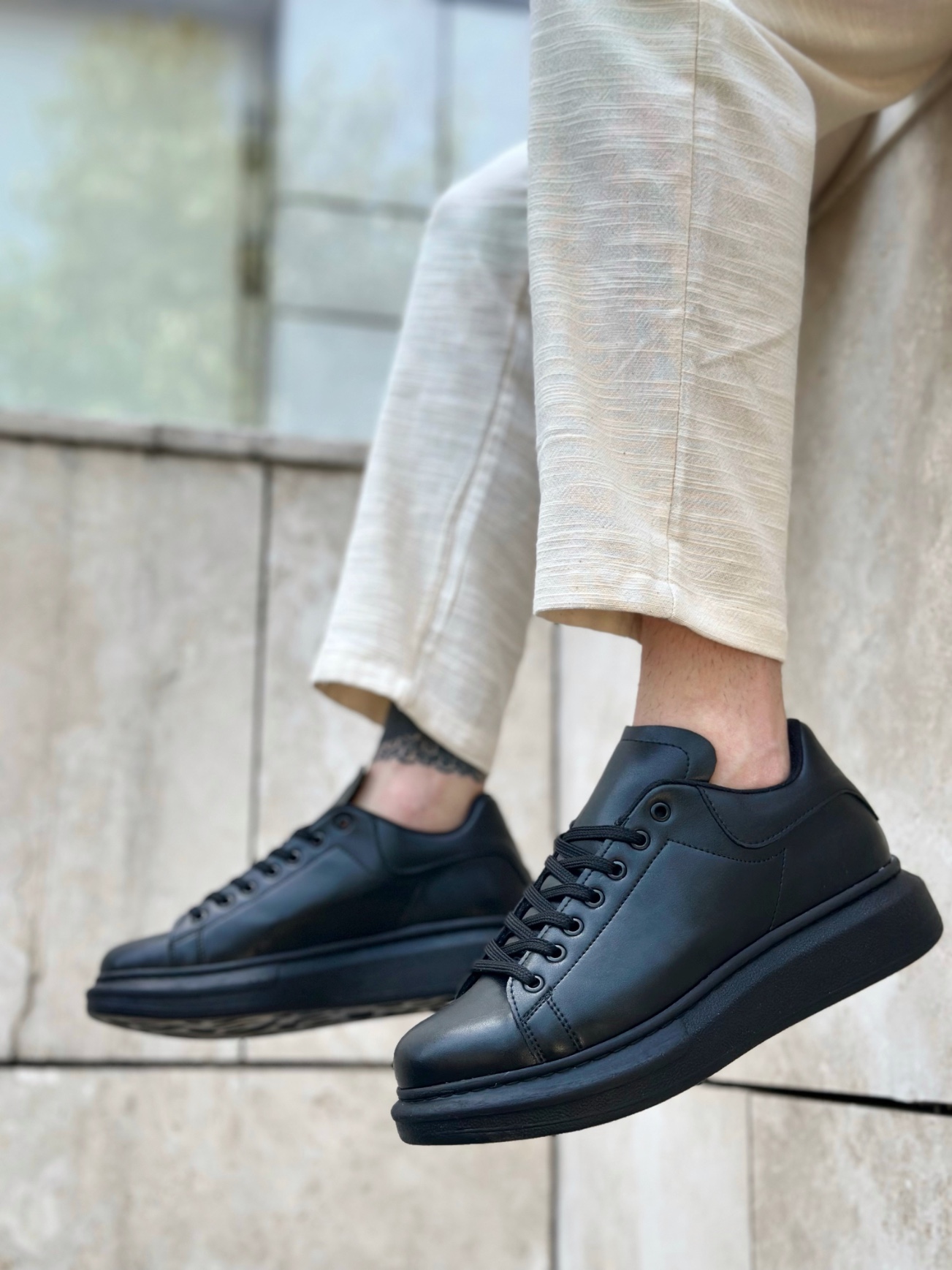 BA0547 BOA Kalın Yüksek Taban Siyah Bağcıklı Spor Erkek Ayakkabı