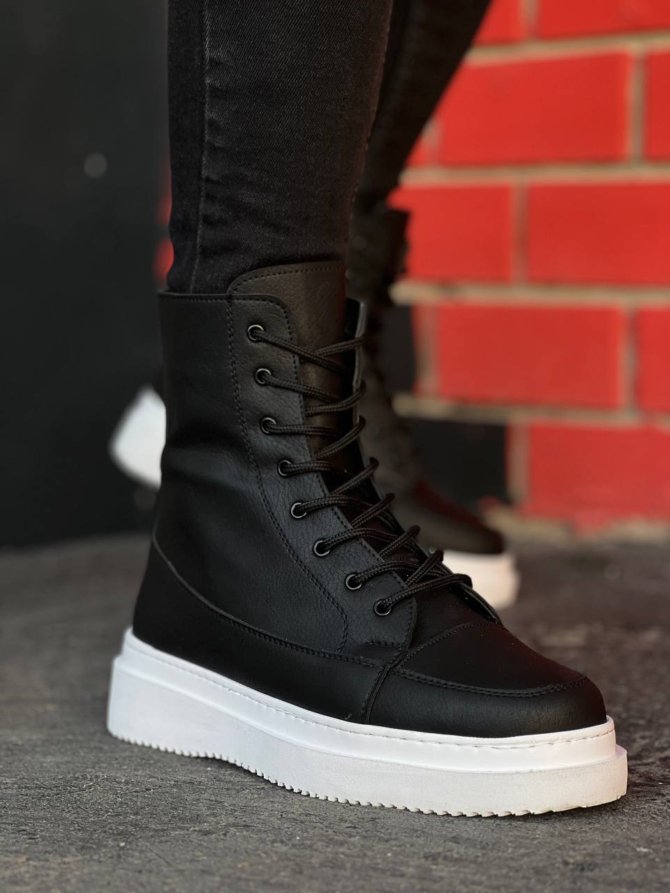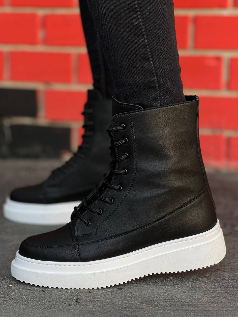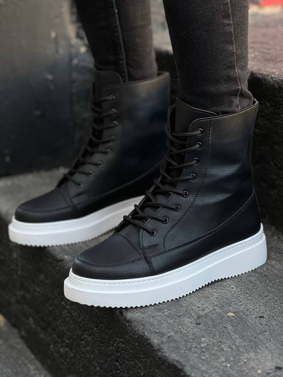 KB-0991 Siyah Cilt Yüksek Taban Bağcıklı Postal Bot