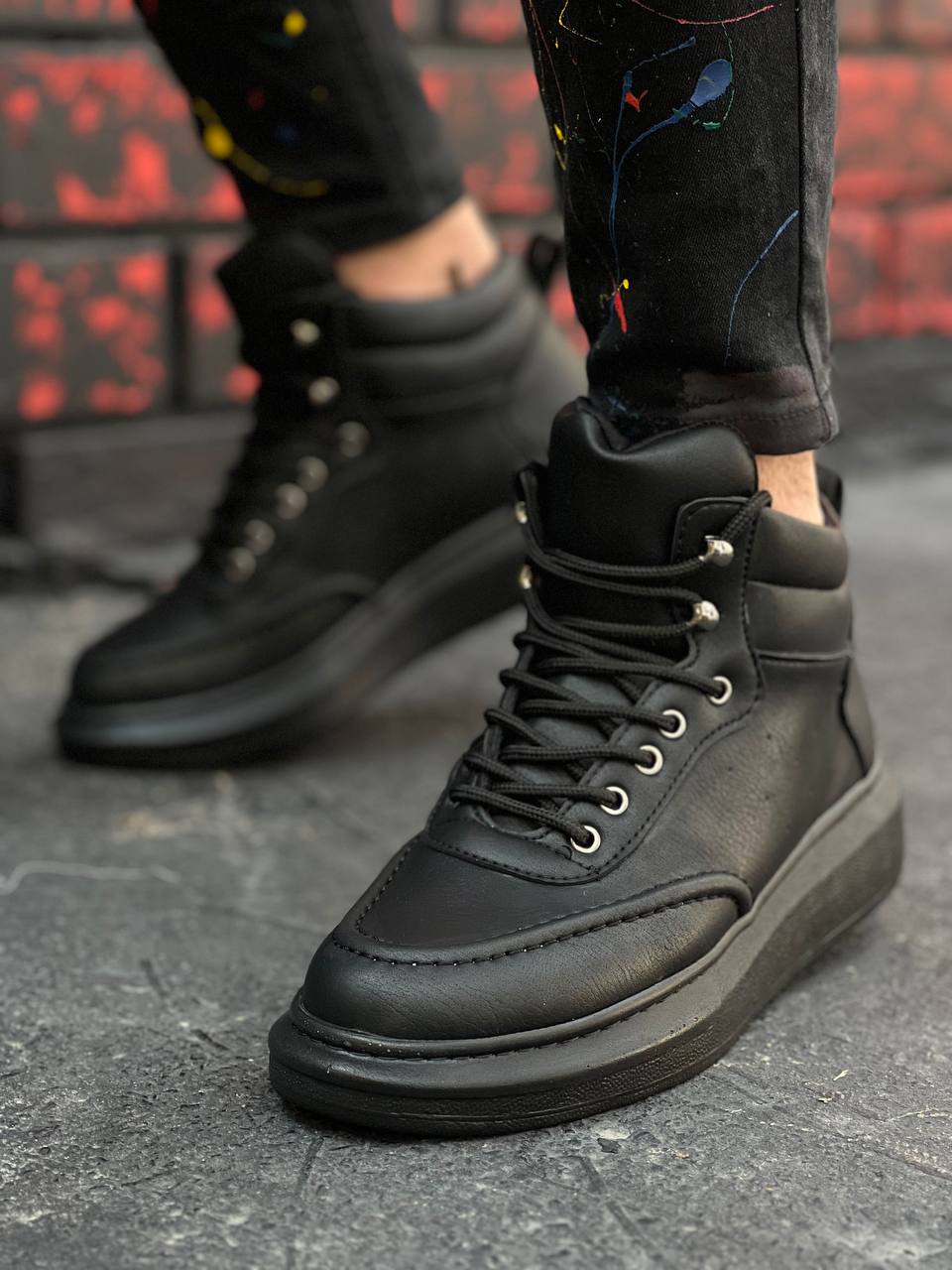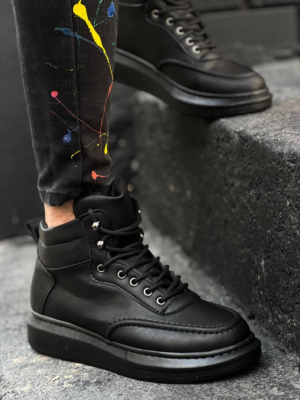 KB-0994 Siyah Cilt Siyah Yüksek Taban Erkek Bilek Bot