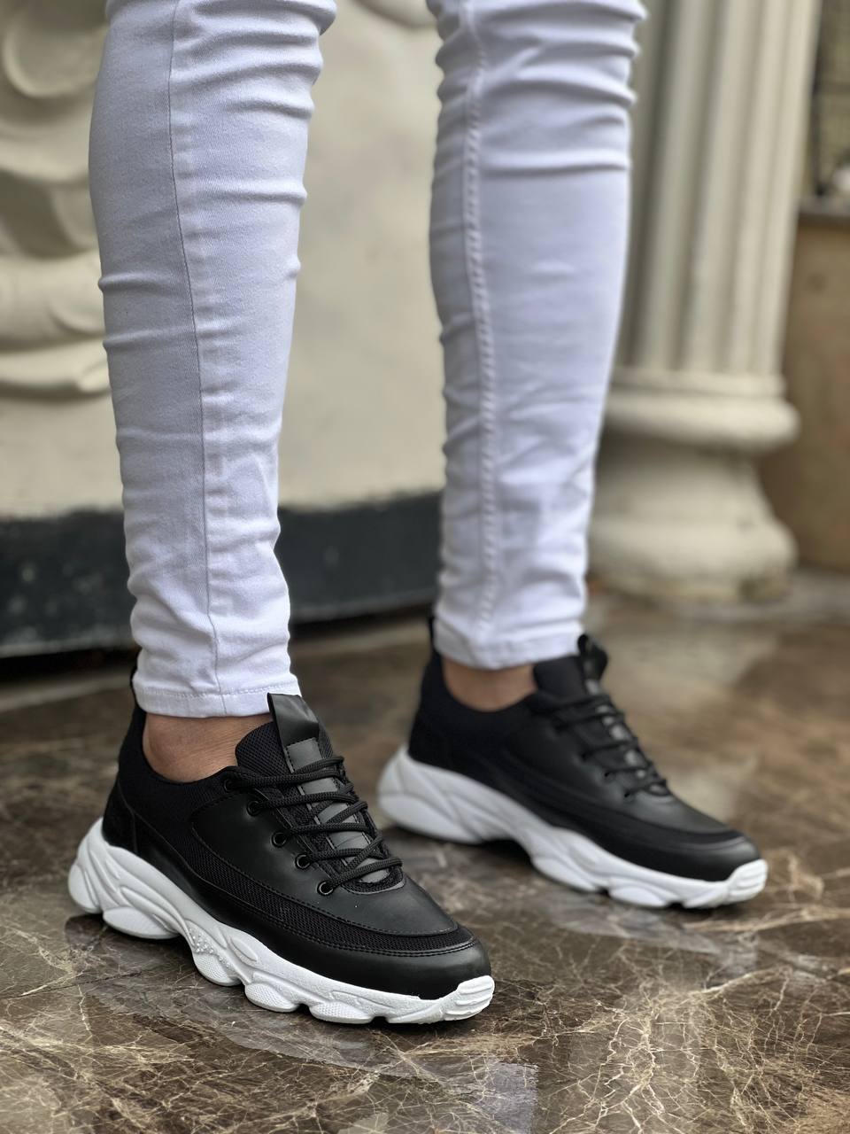 KB-707 Siyah Cilt Yüksek Taban Bağcıklı Günlük Erkek Ayakkabı