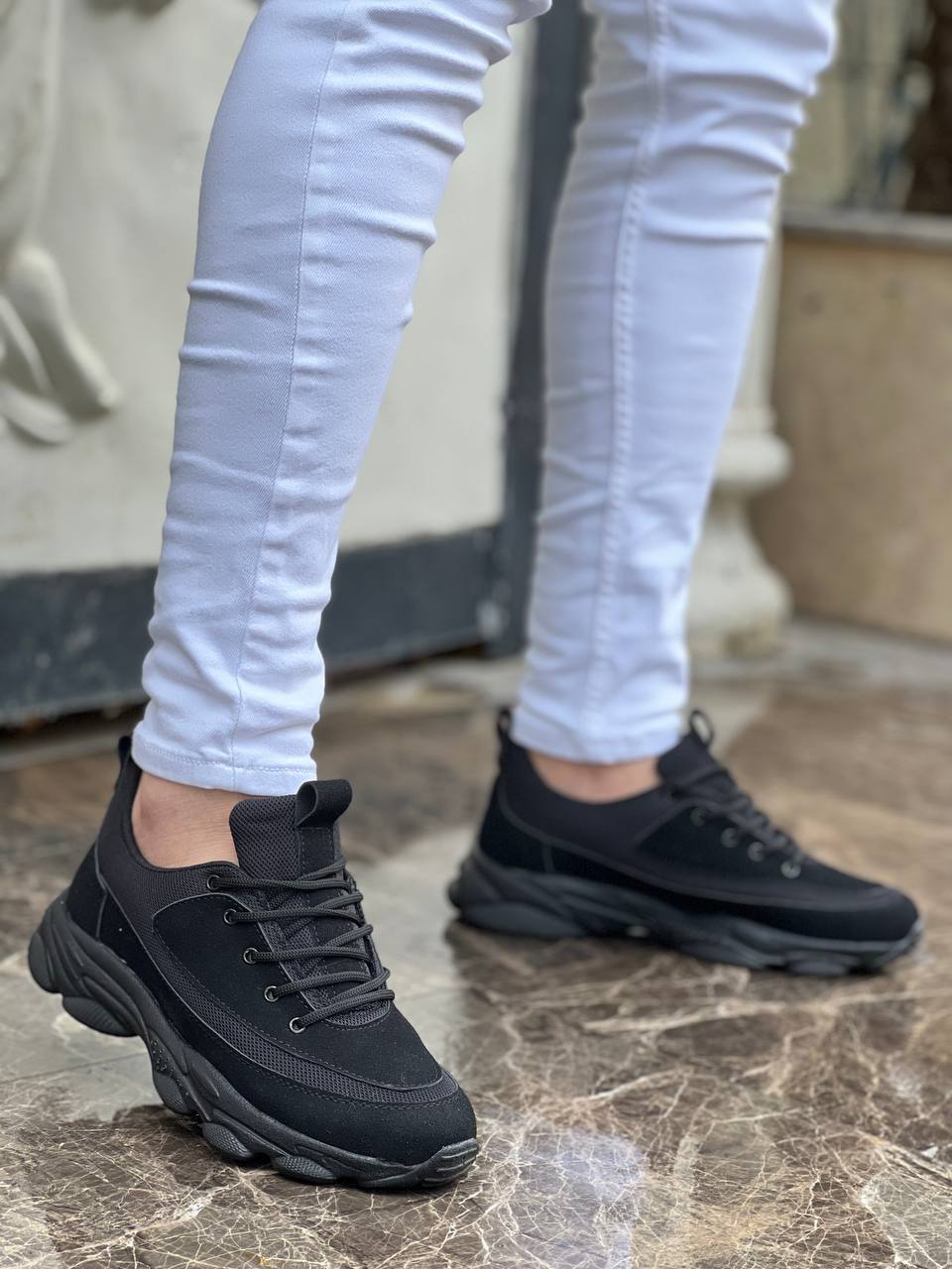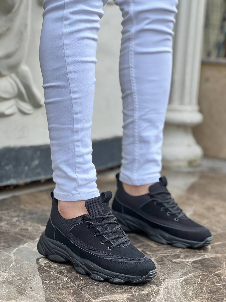 • KB-707 Siyah Süet Siyah Yüksek Taban Bağcıklı Günlük Erkek Ayakkabı