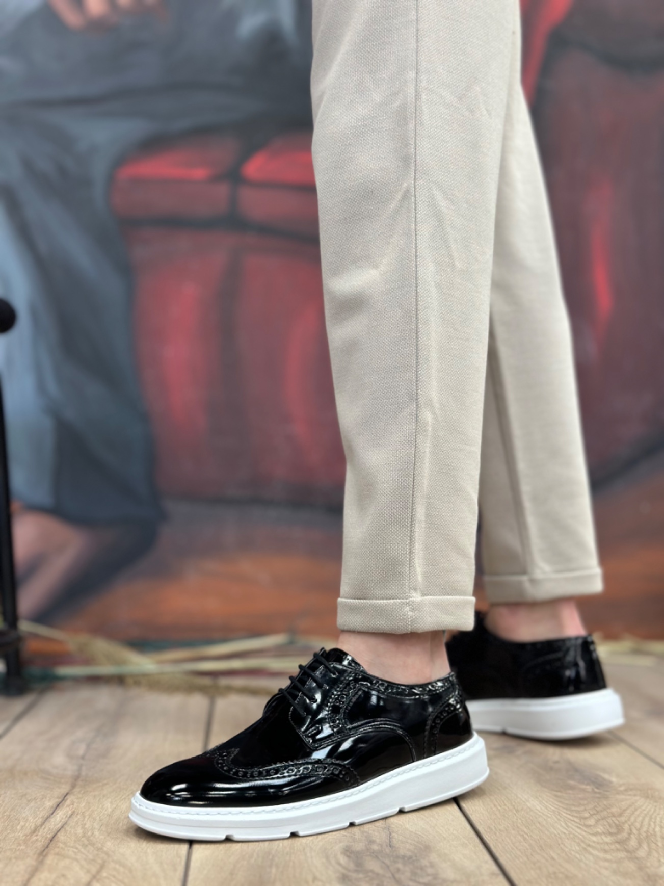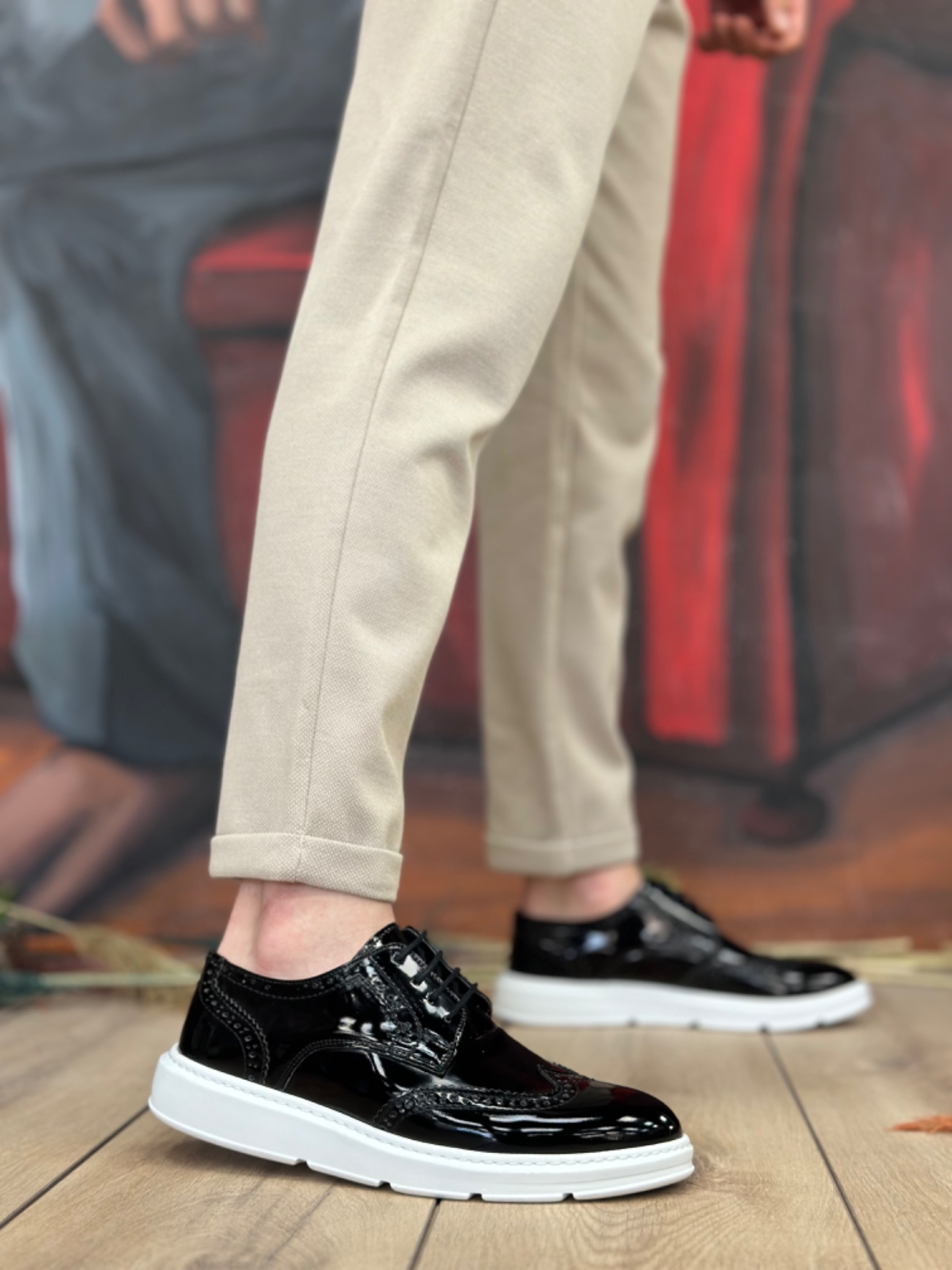 • BA0003 Bağcıklı Klasik  Siyah Beyaz Taban Rugan Yüksek Taban Casual Erkek Ayakkabı