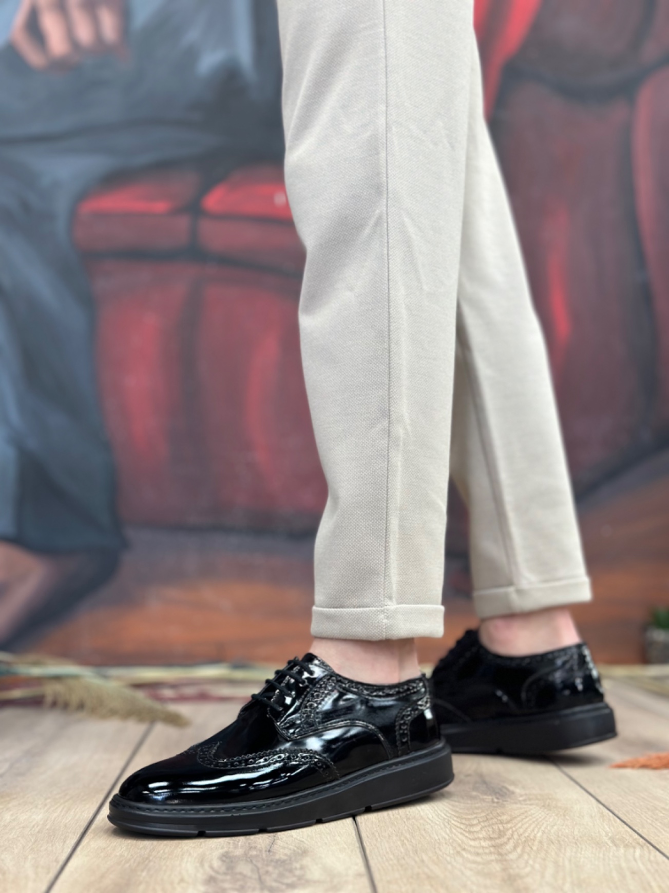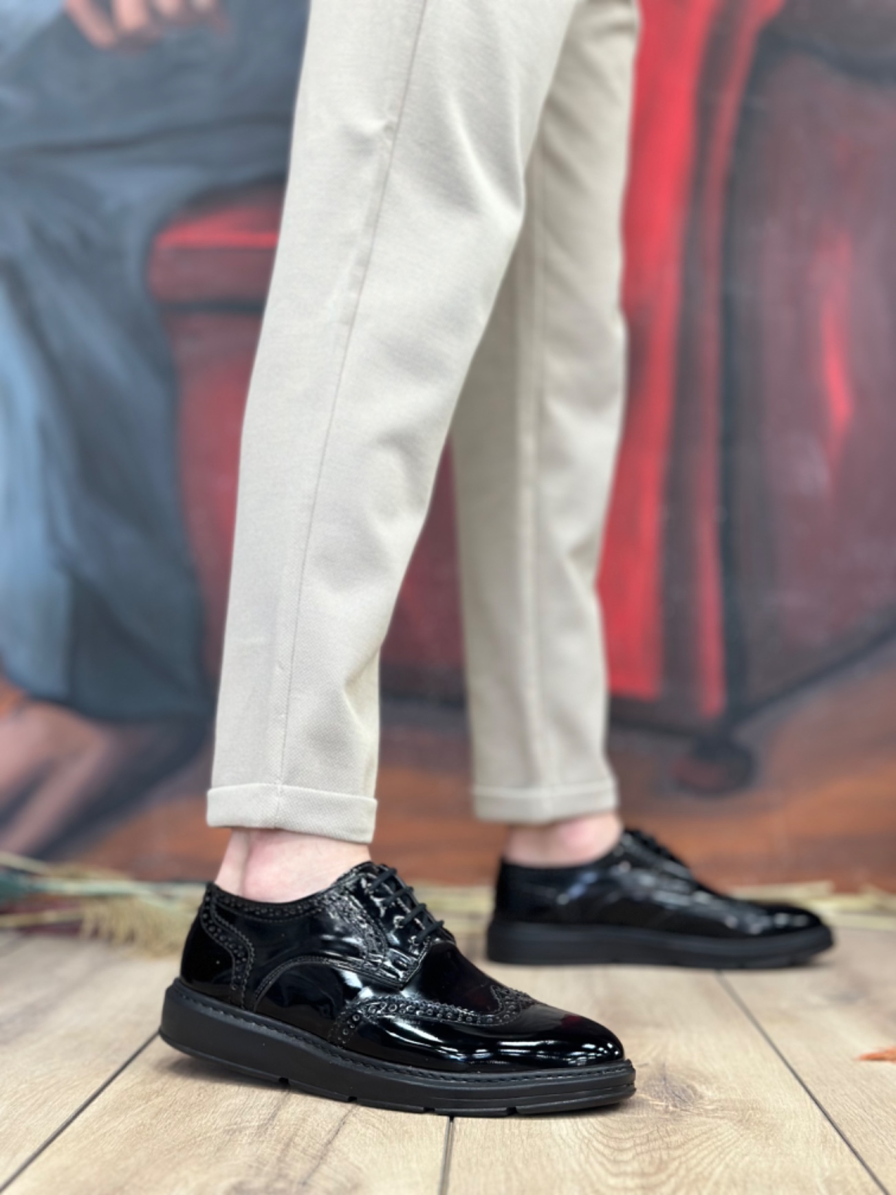 • BA0003 Bağcıklı Klasik  Siyah Taban Rugan Yüksek Taban Casual Erkek Ayakkabı