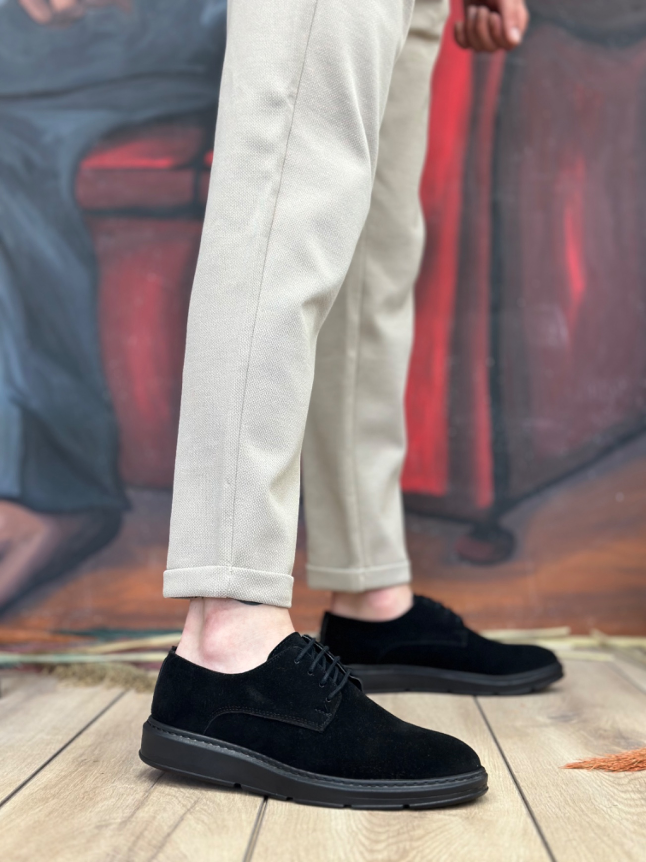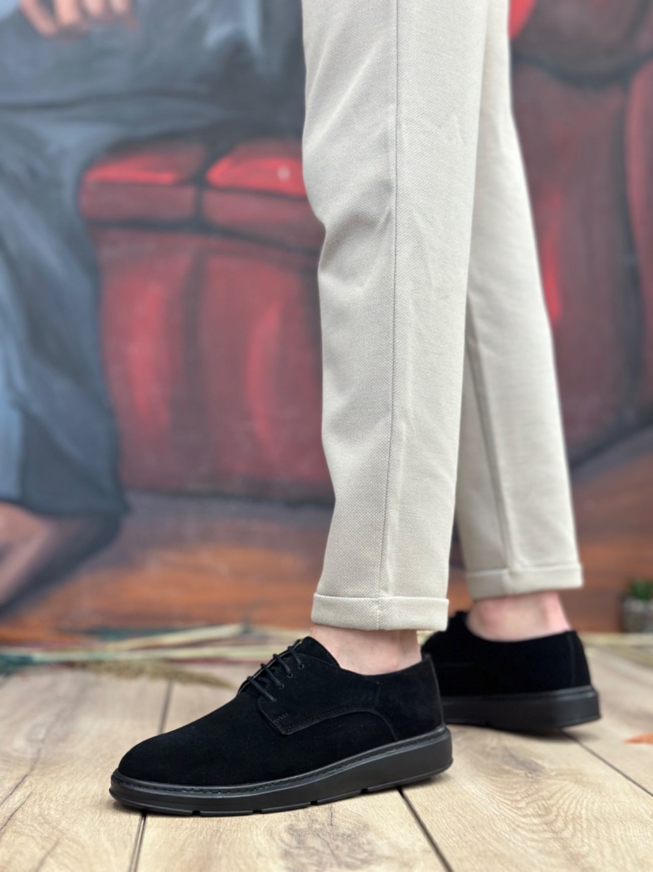 Klasik Ayakkabı BA0003 Bağcıklı Süet Klasik Siyah Yüksek Taban Casual Erkek Ayakkabı