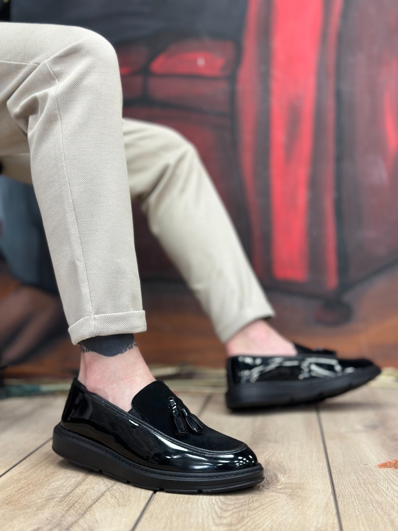 • BA0005 Bağcıksız Yüksek Taban Siyah Taban Klasik Süet Detaylı Püsküllü Corcik Erkek Ayakkabı