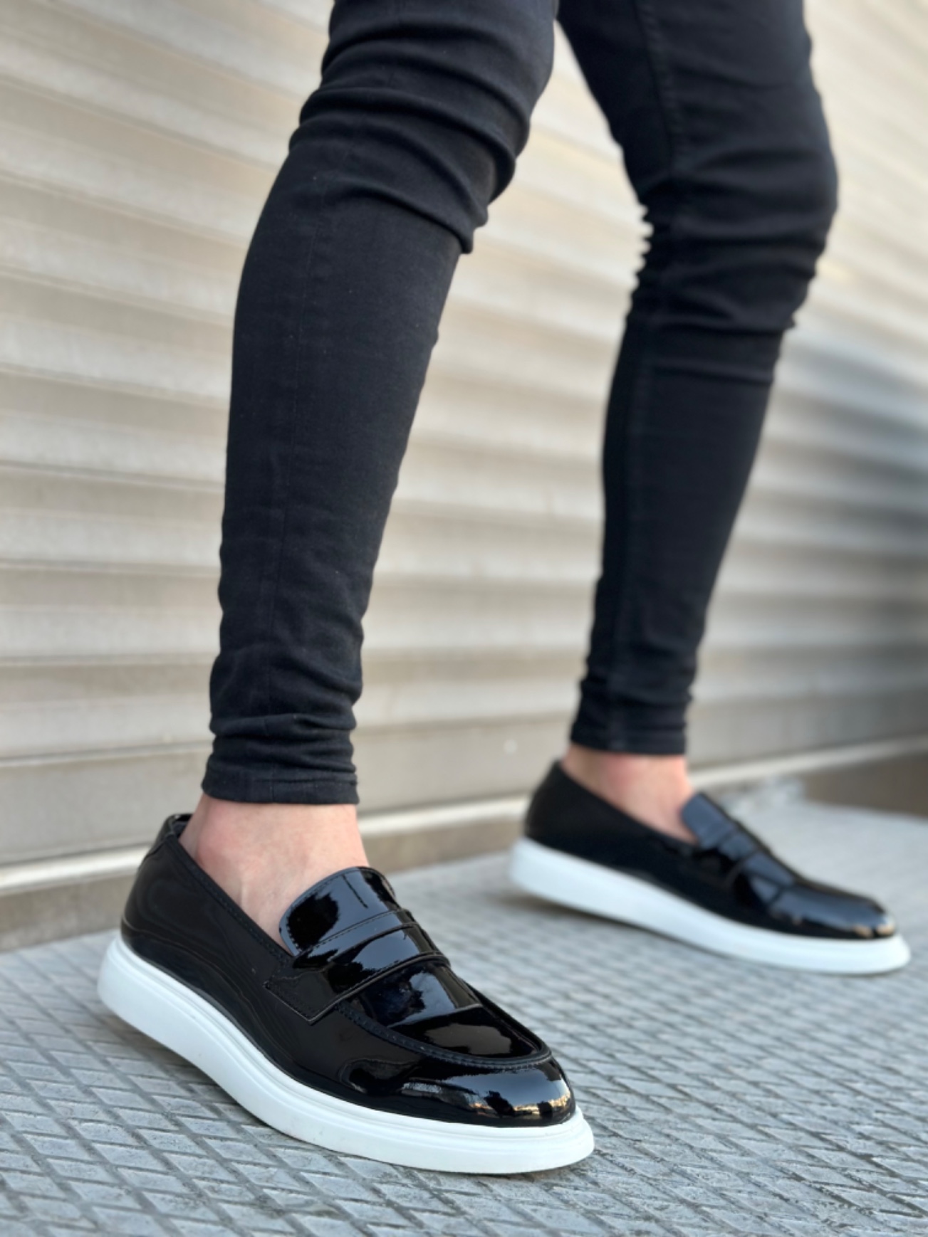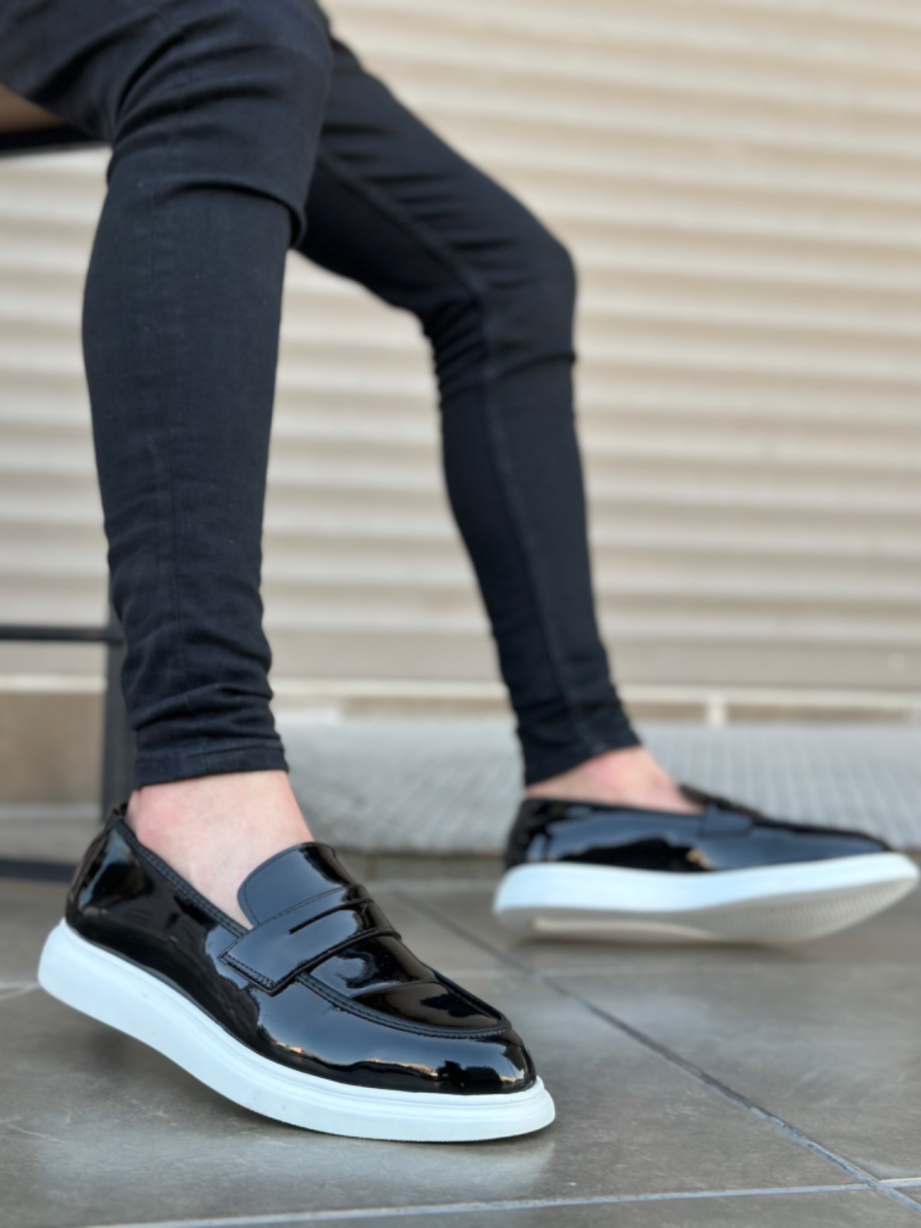 • BA0316 Bağcıksız Yüksek Beyaz Taban Klasik Rugan Corcik Erkek Ayakkabı