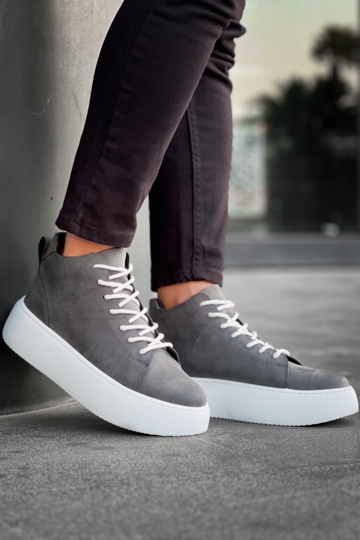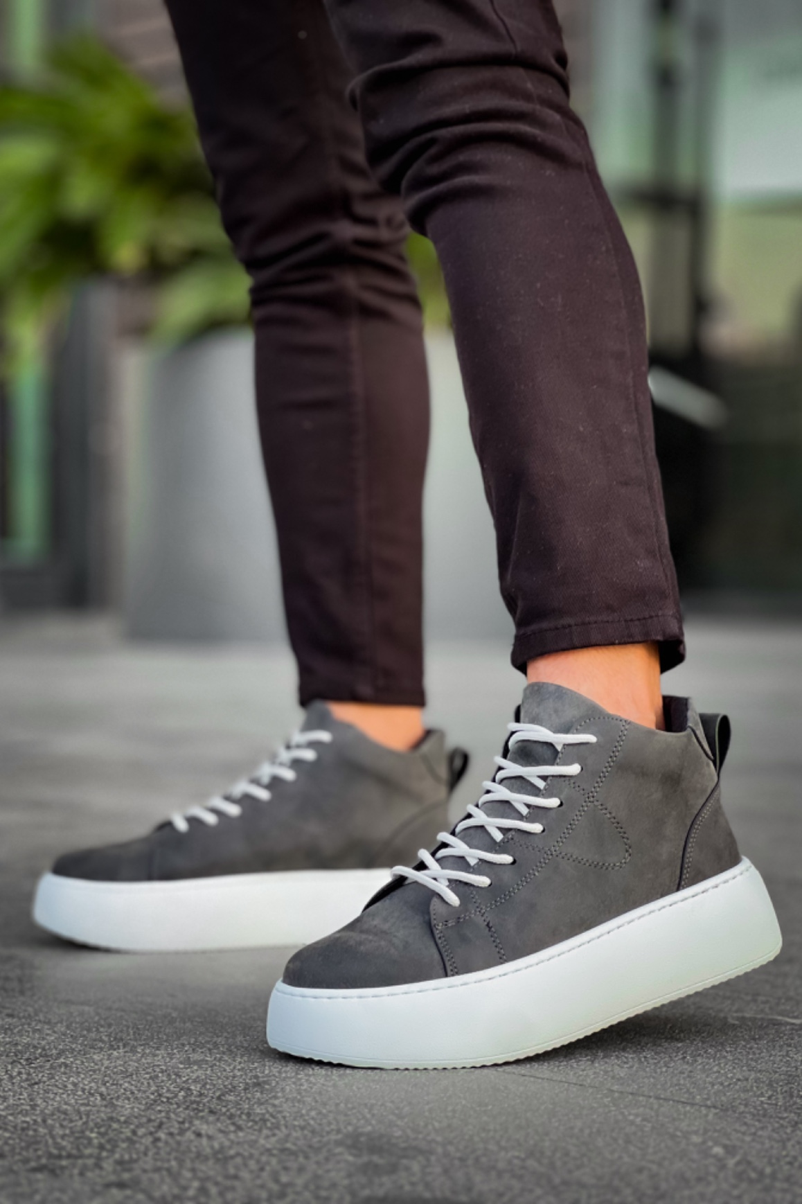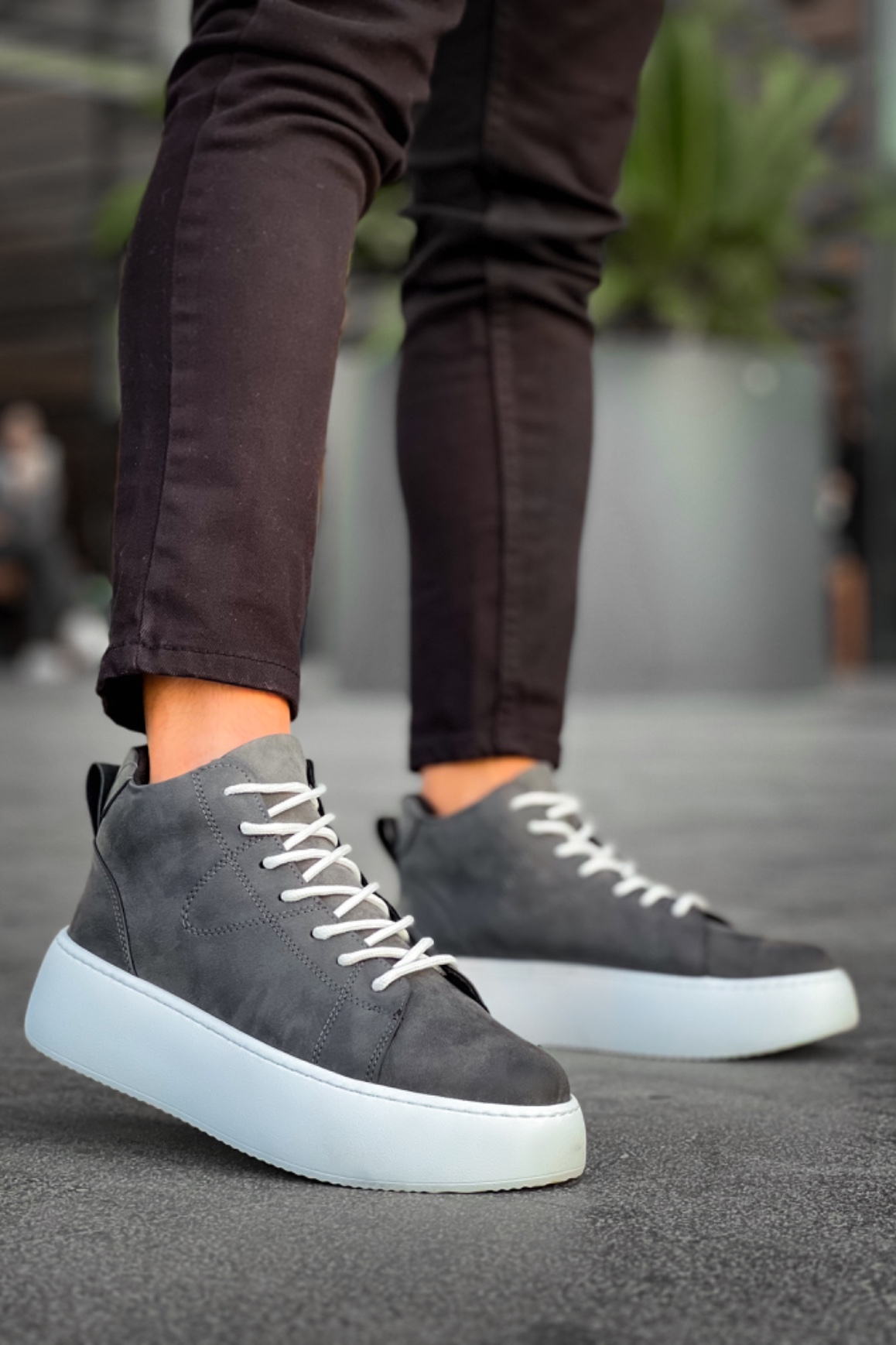 LE10 Bağcıklı Erkek Yüksek Beyaz Taban Antrasit Spor Bot