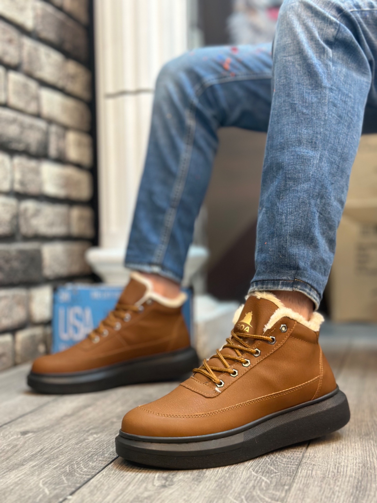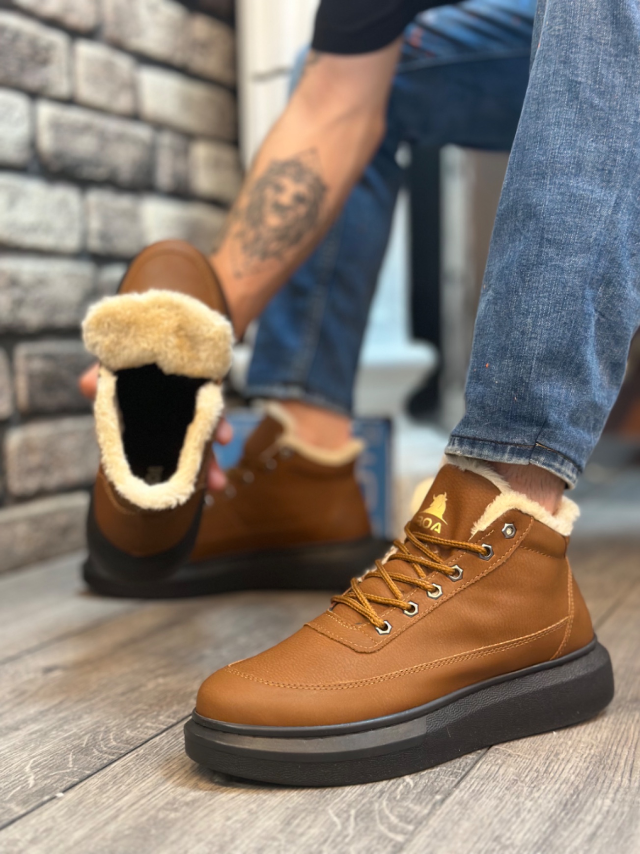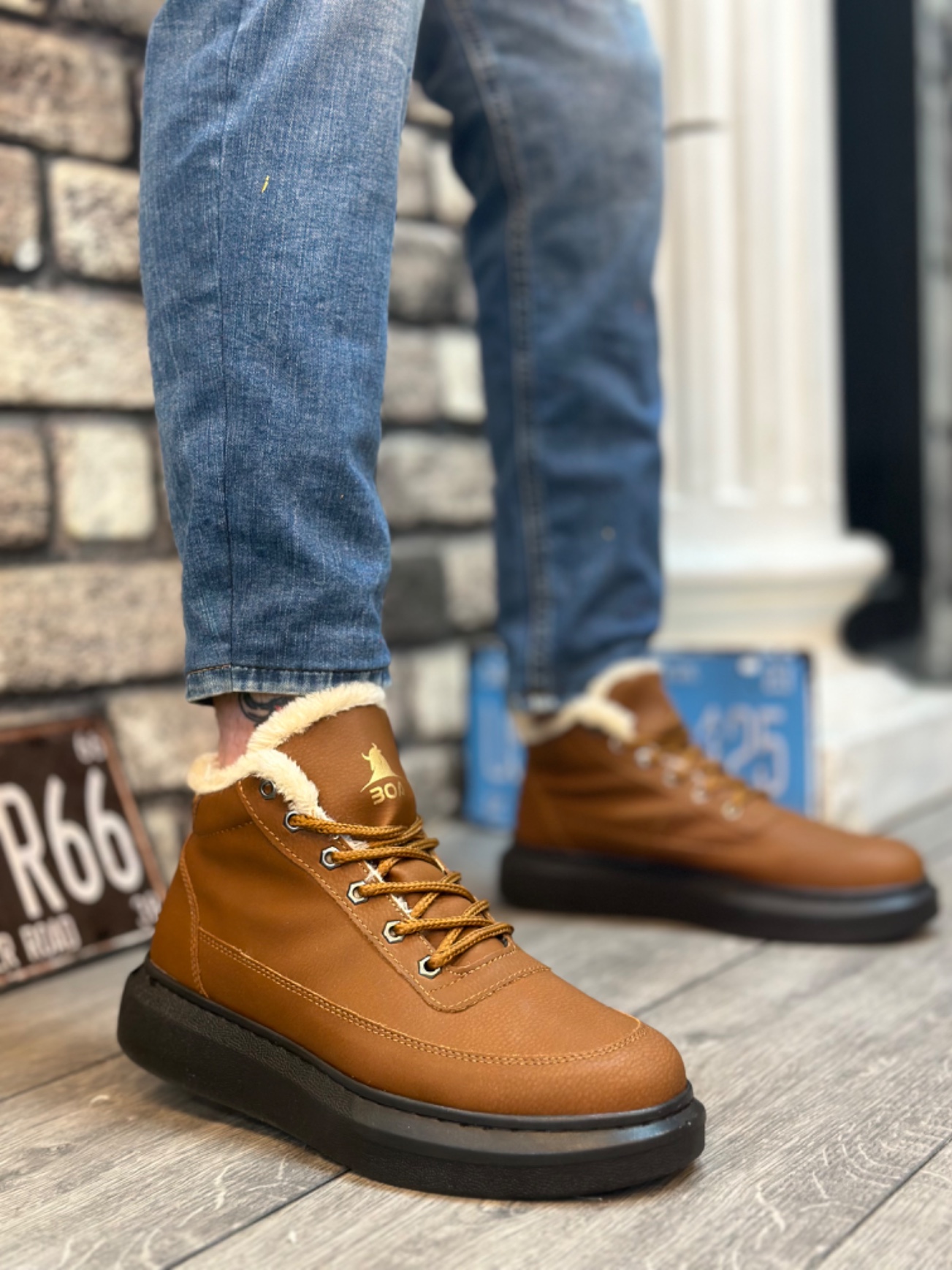 BA0151 İçi Kürklü Bağcıklı Açık Taba Erkek Tarz Spor Bot