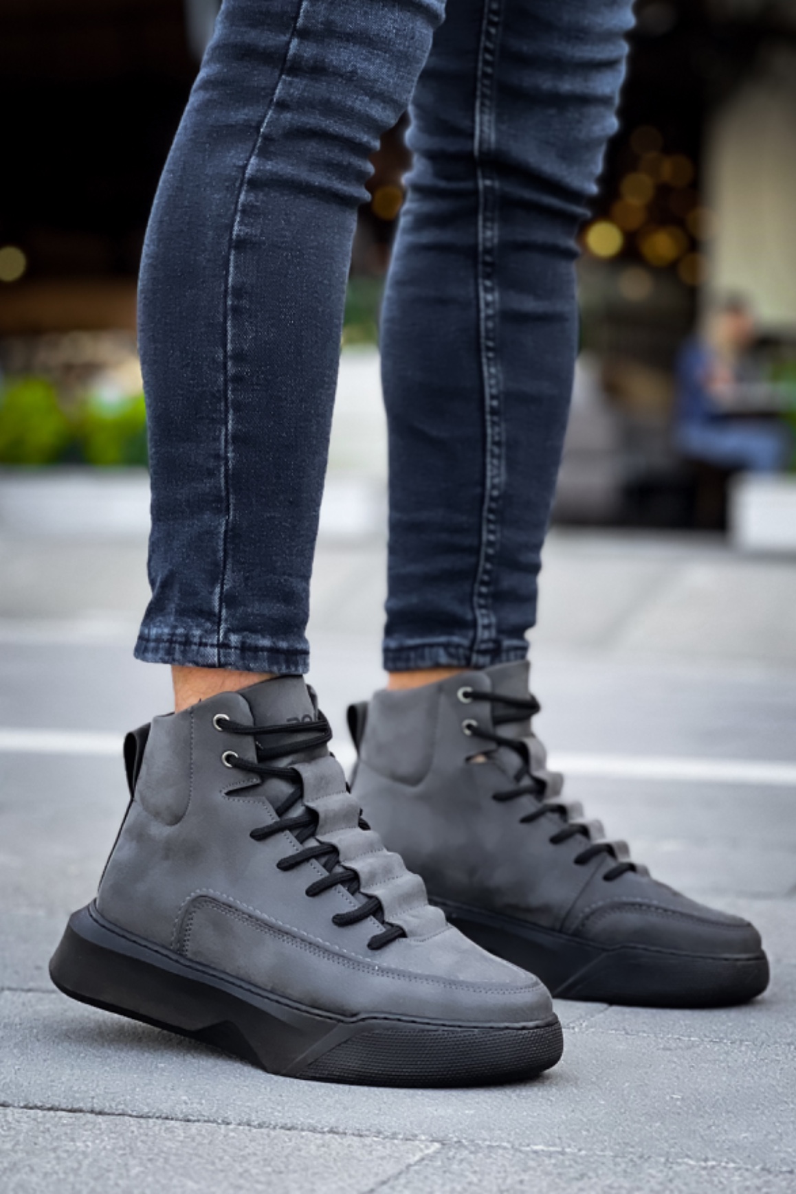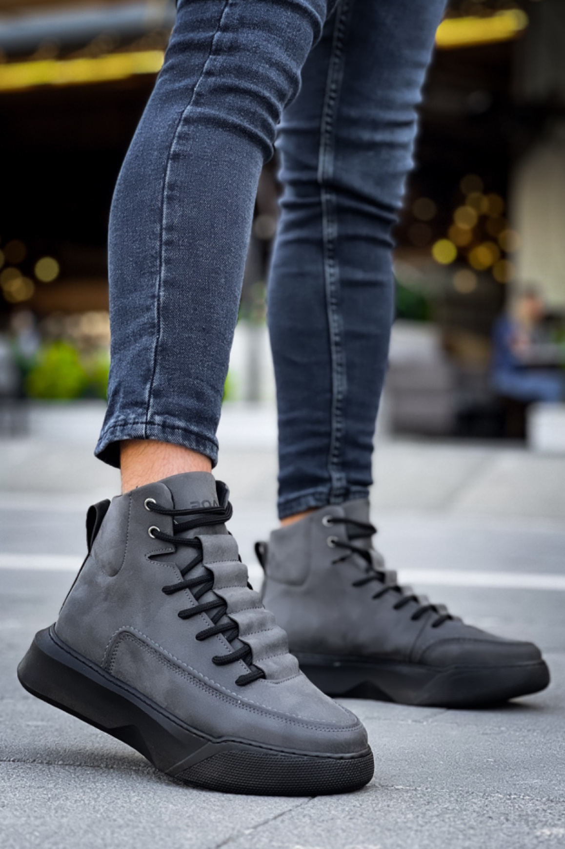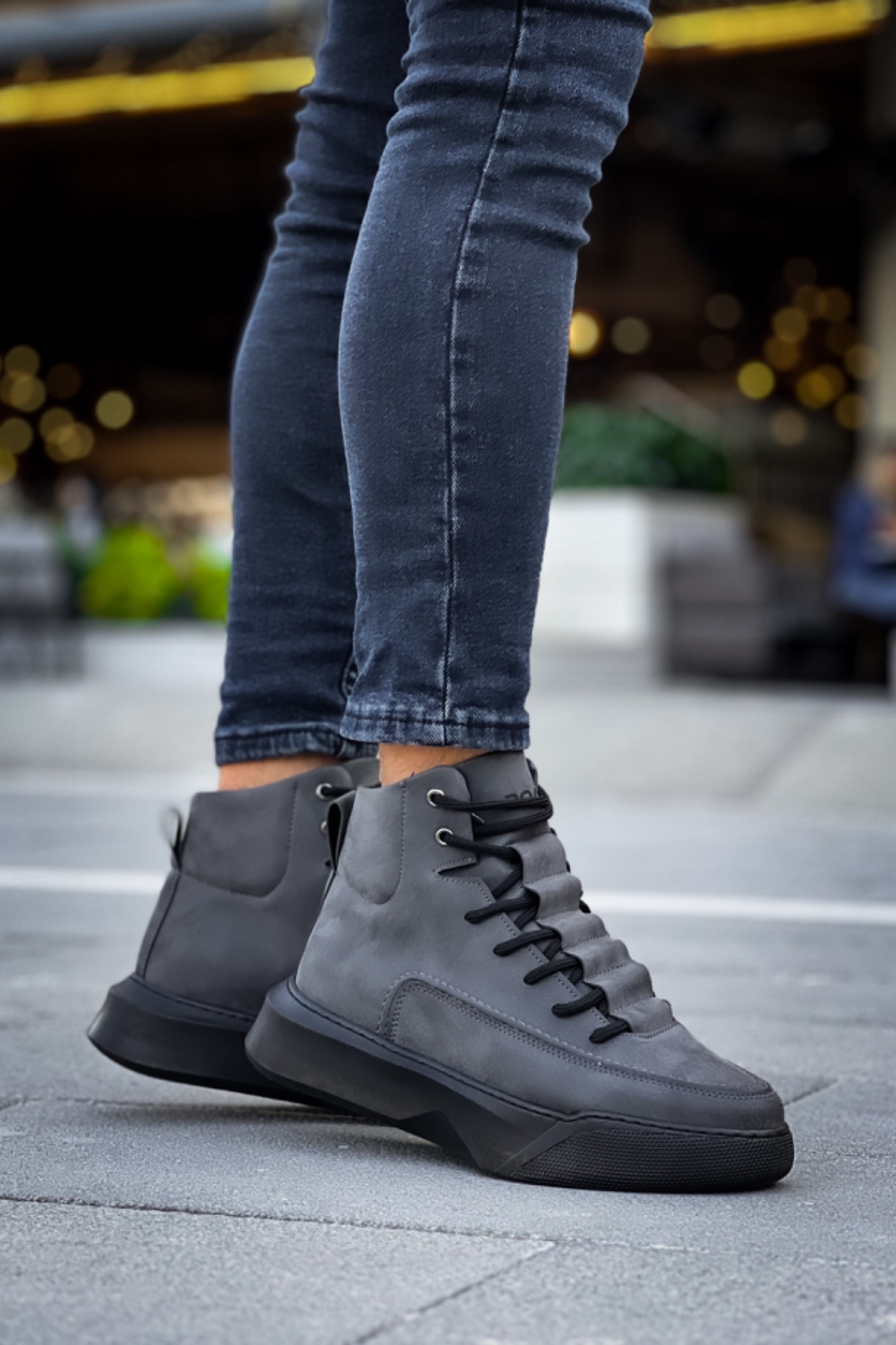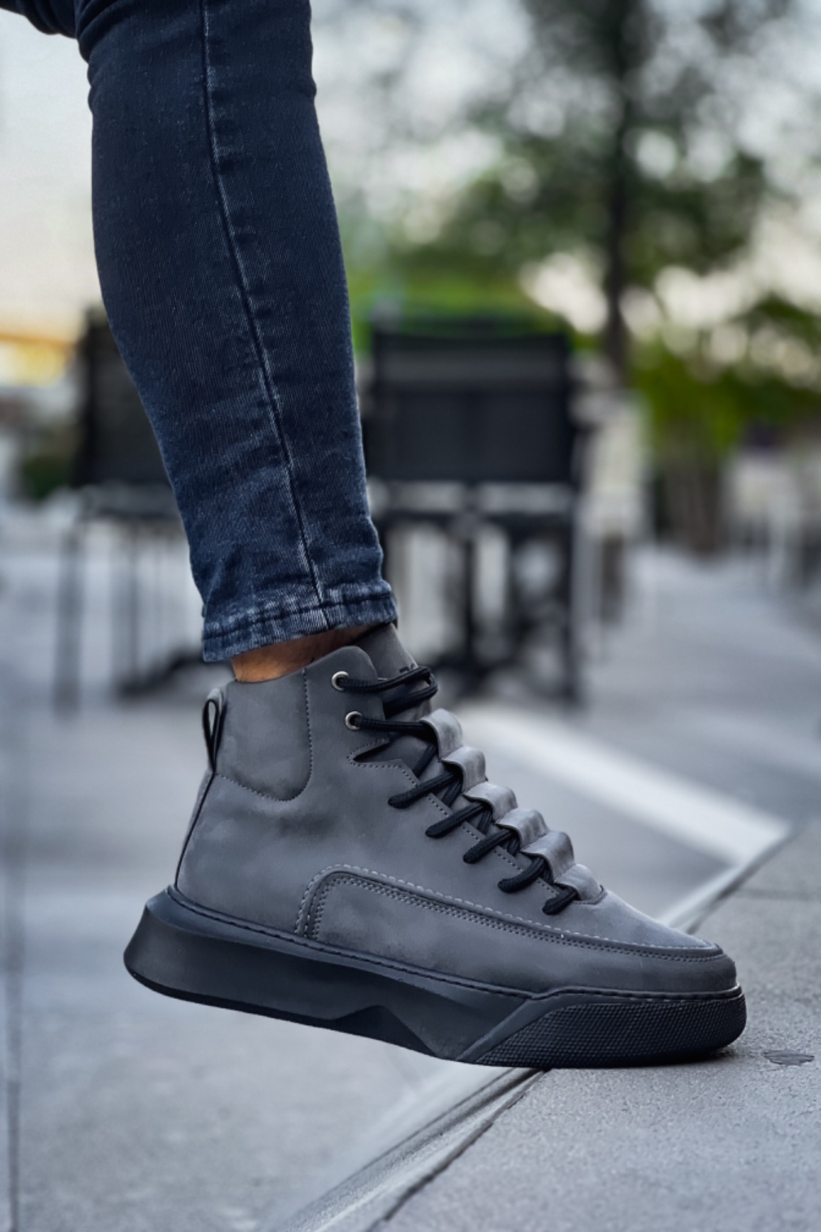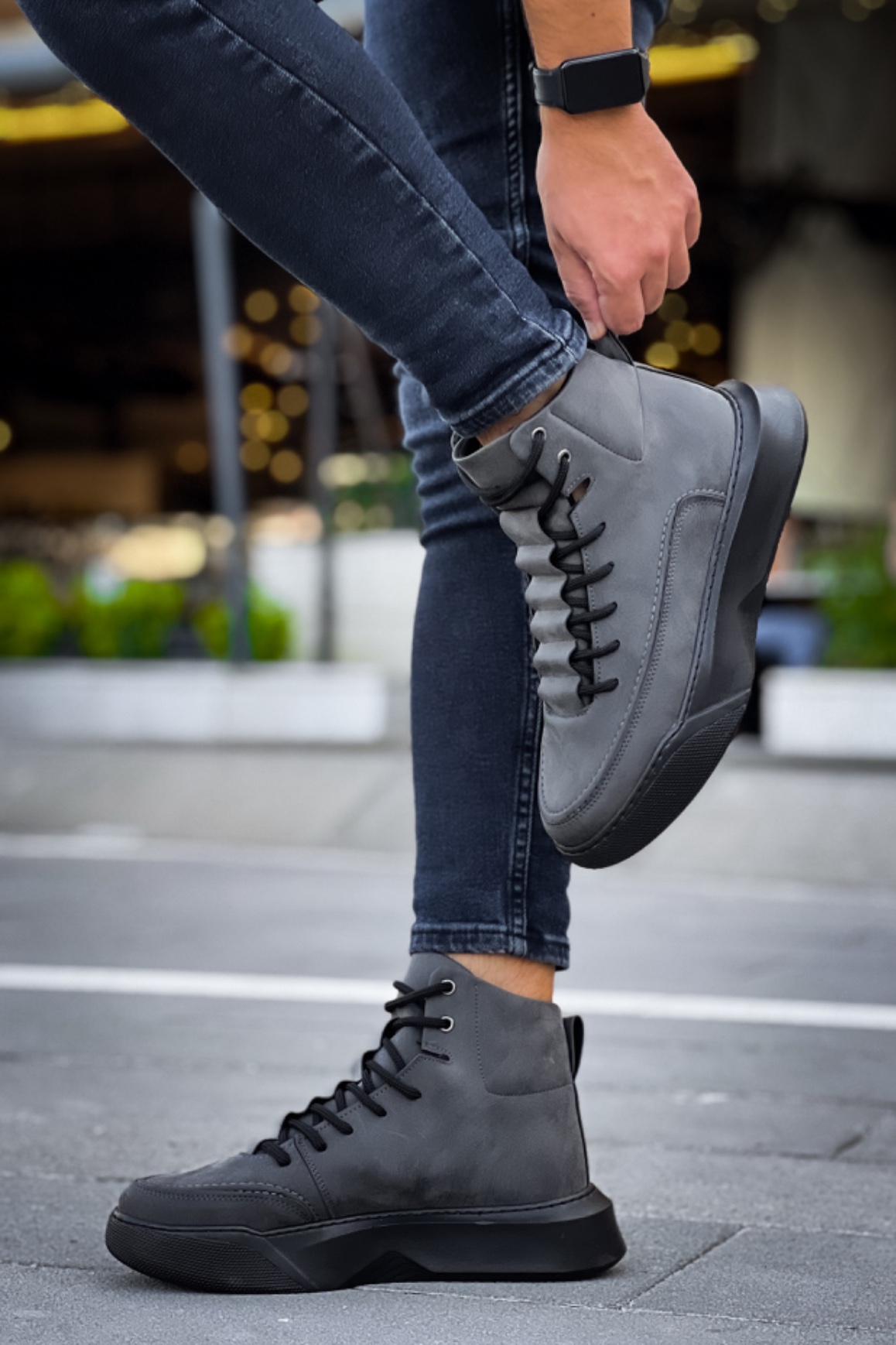 BA0321 Gizli Bağcıklı Erkek Yüksek Taban Füme Spor Bot