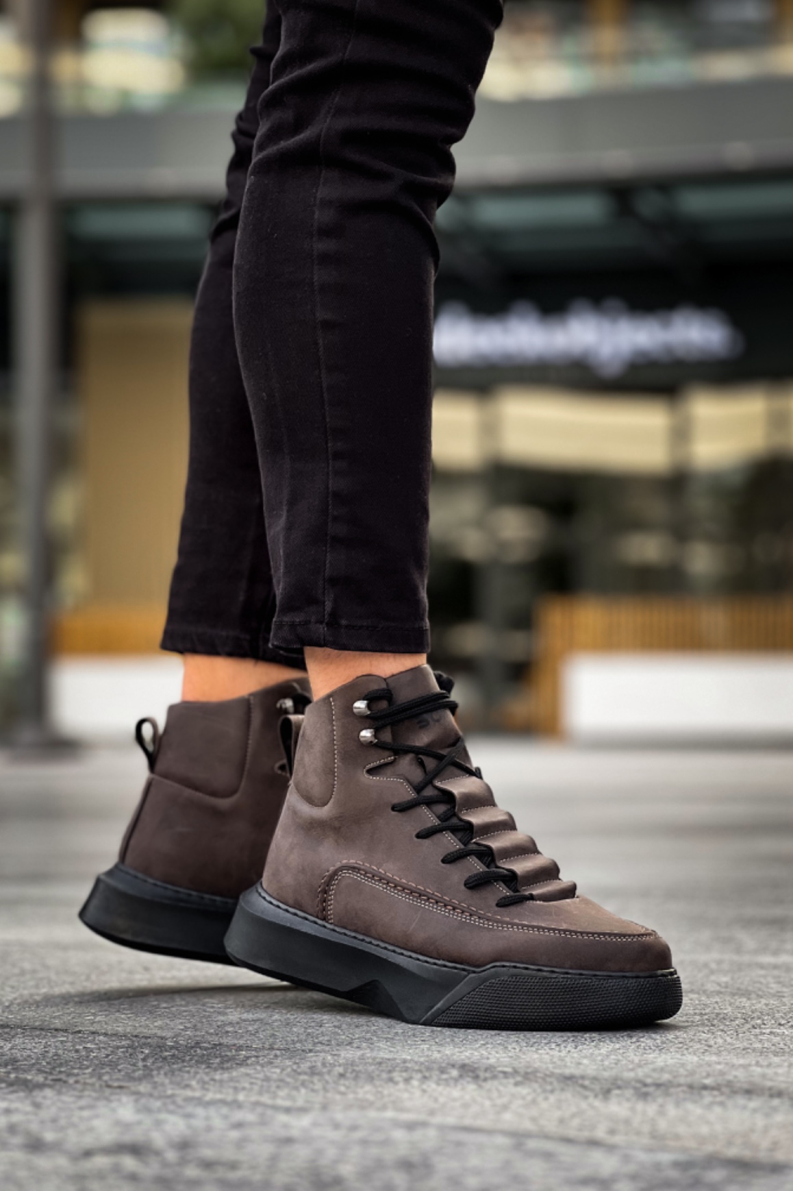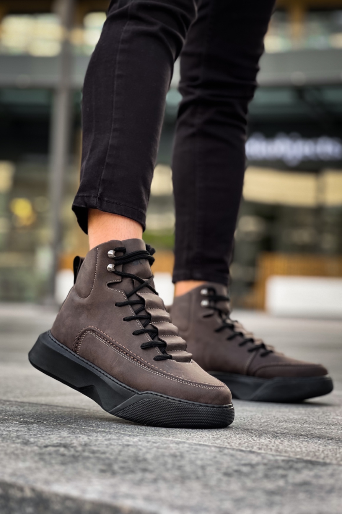 • BA0321 Gizli Bağcıklı Erkek Yüksek Taban Kahverengi Spor Bot