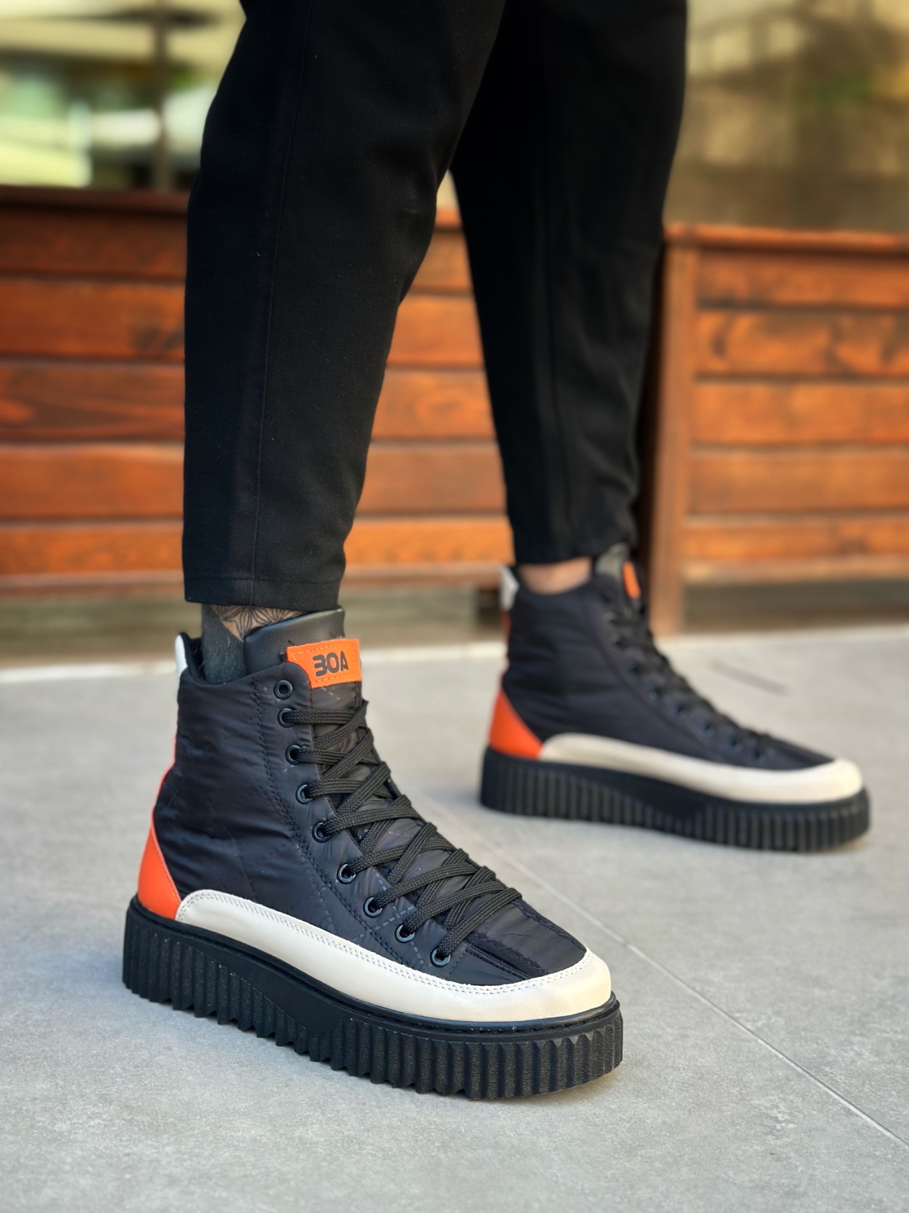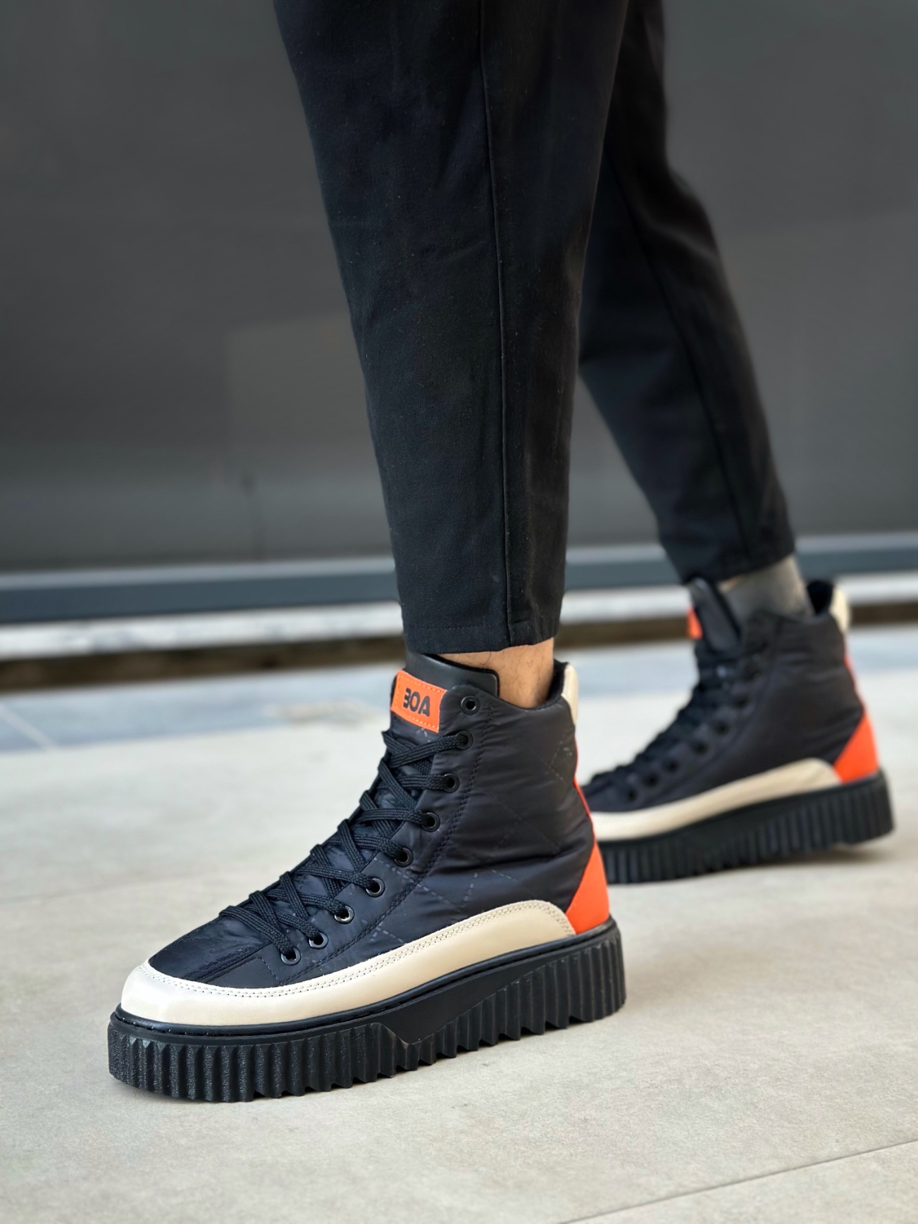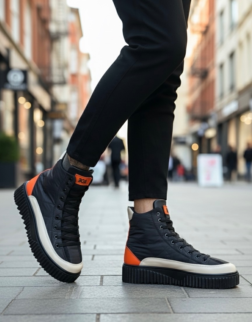 • BA0811 BOA Yüksek Siyah Taban Paraşüt Kumaş Turuncu Cilt Detaylı Yarım Bilek Spor Bot