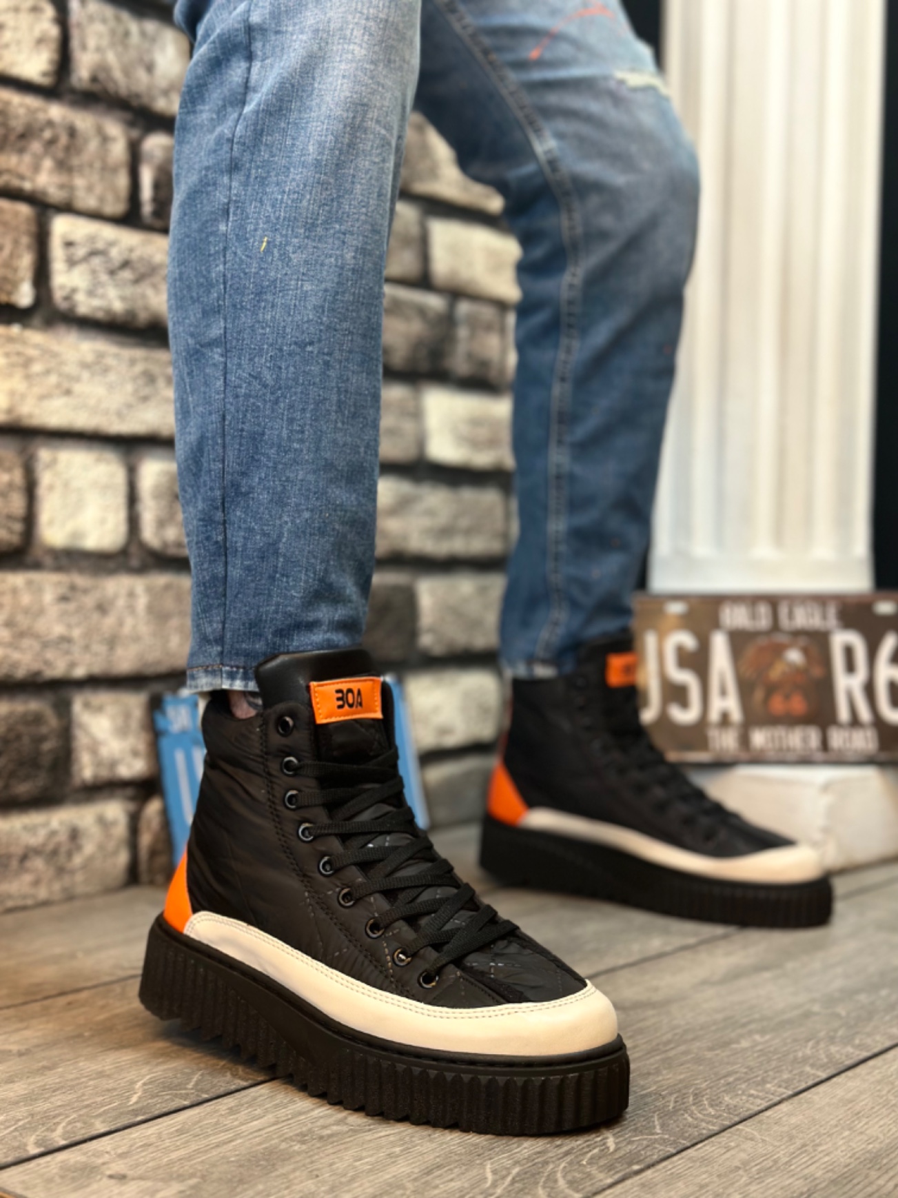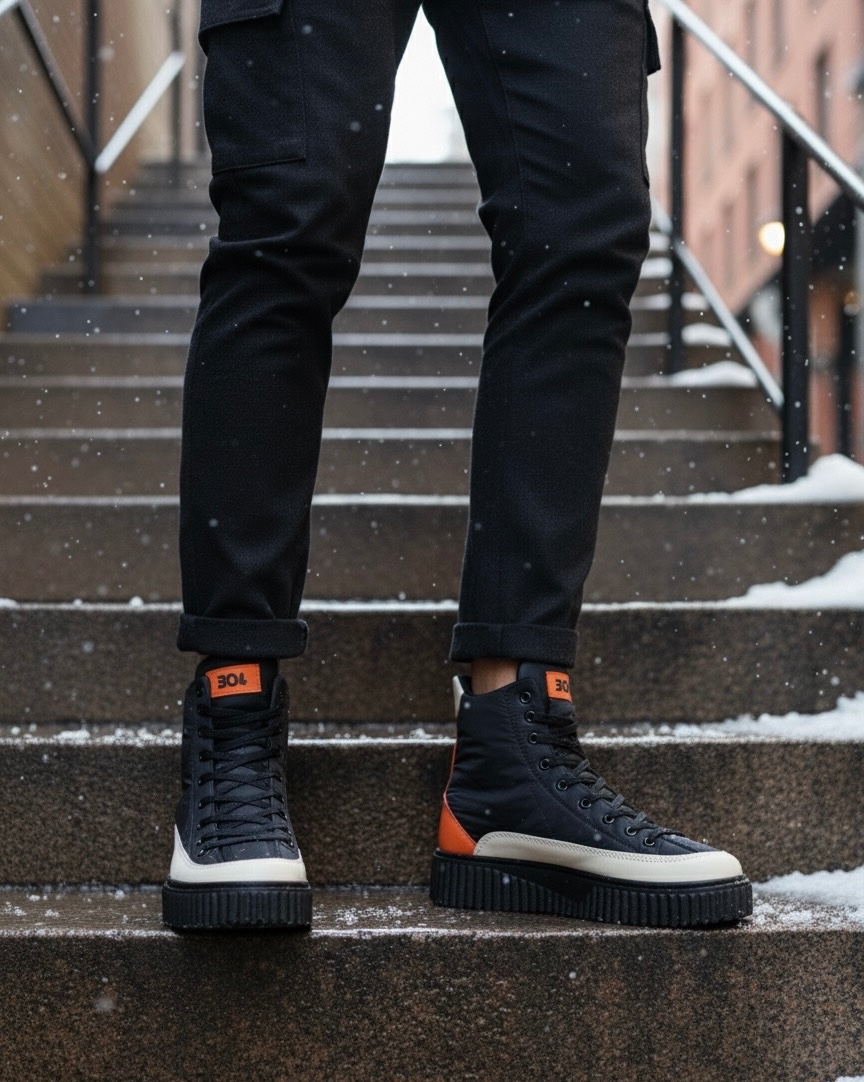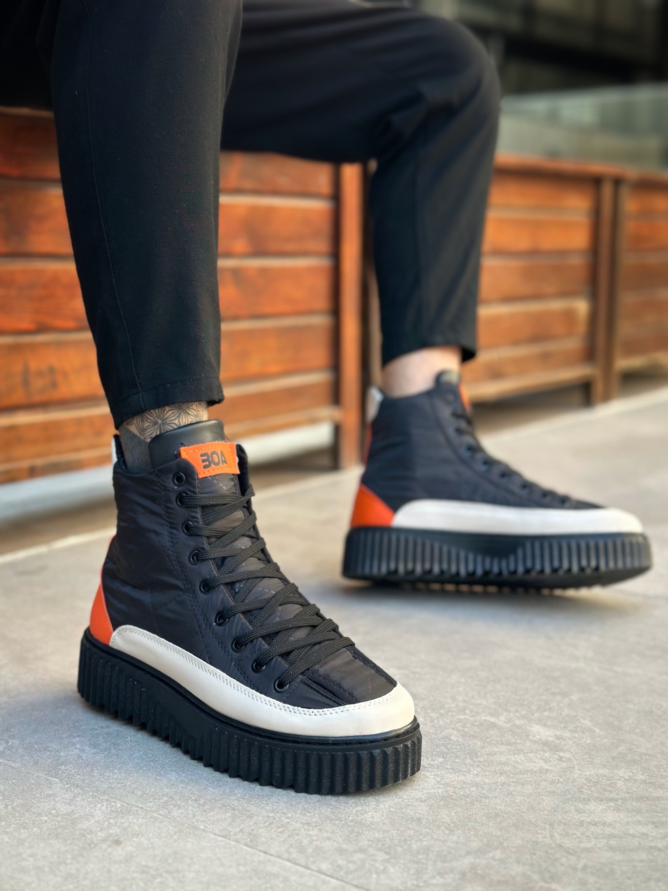 • BA0811 BOA Yüksek Siyah Taban Paraşüt Kumaş Turuncu Cilt Detaylı Yarım Bilek Spor Bot
