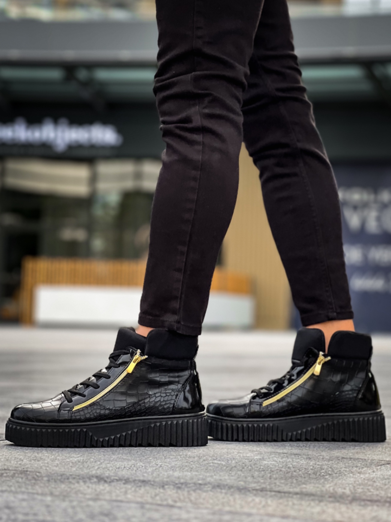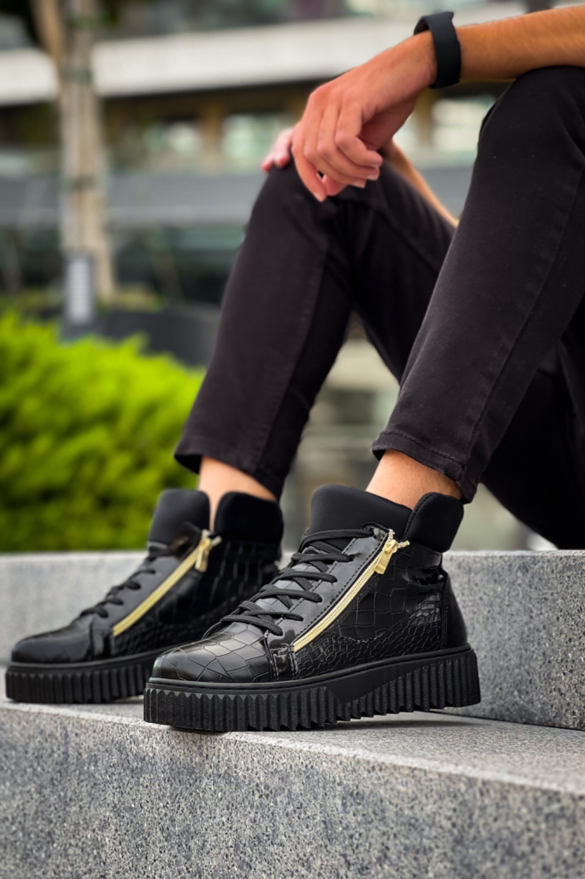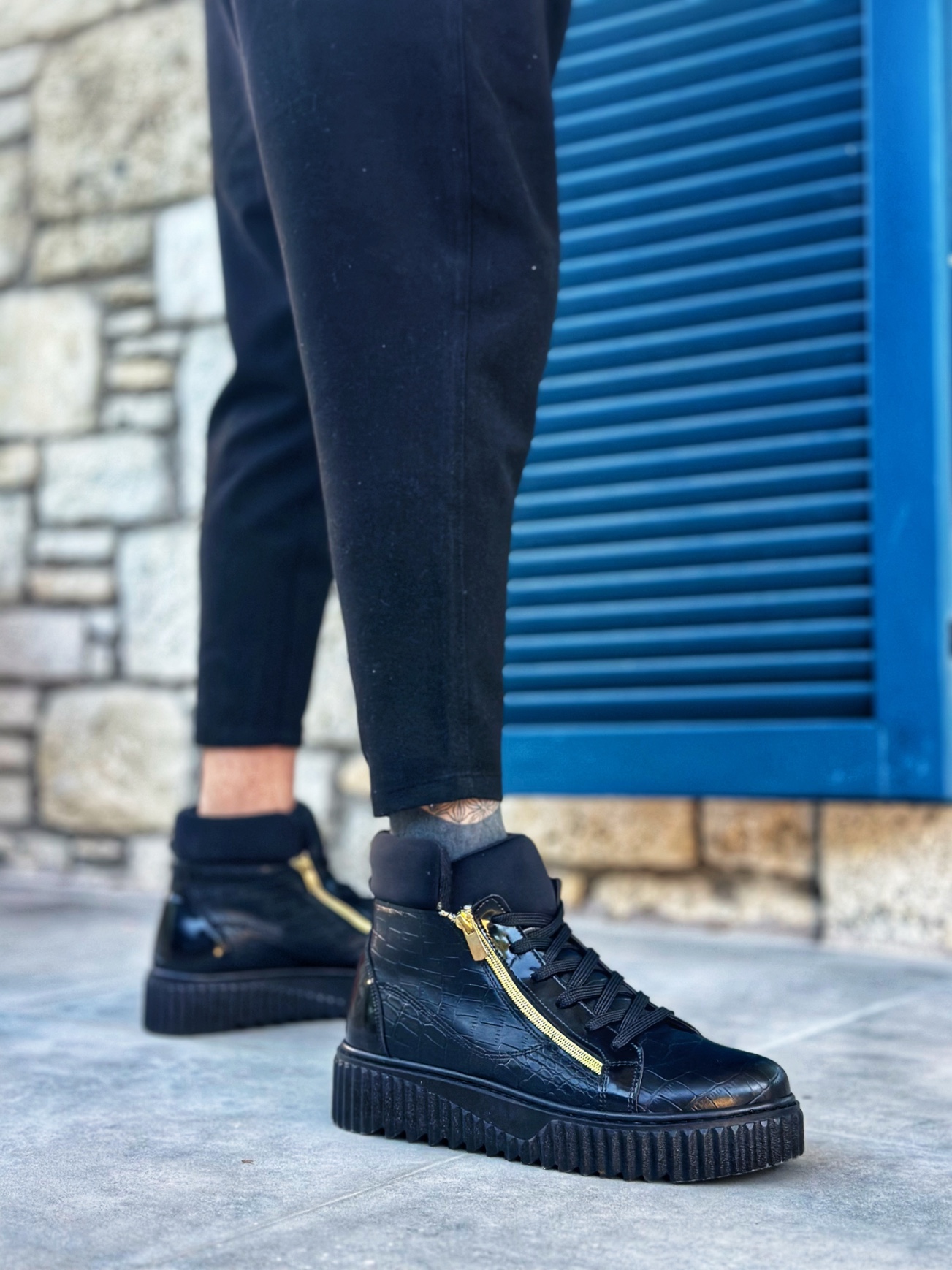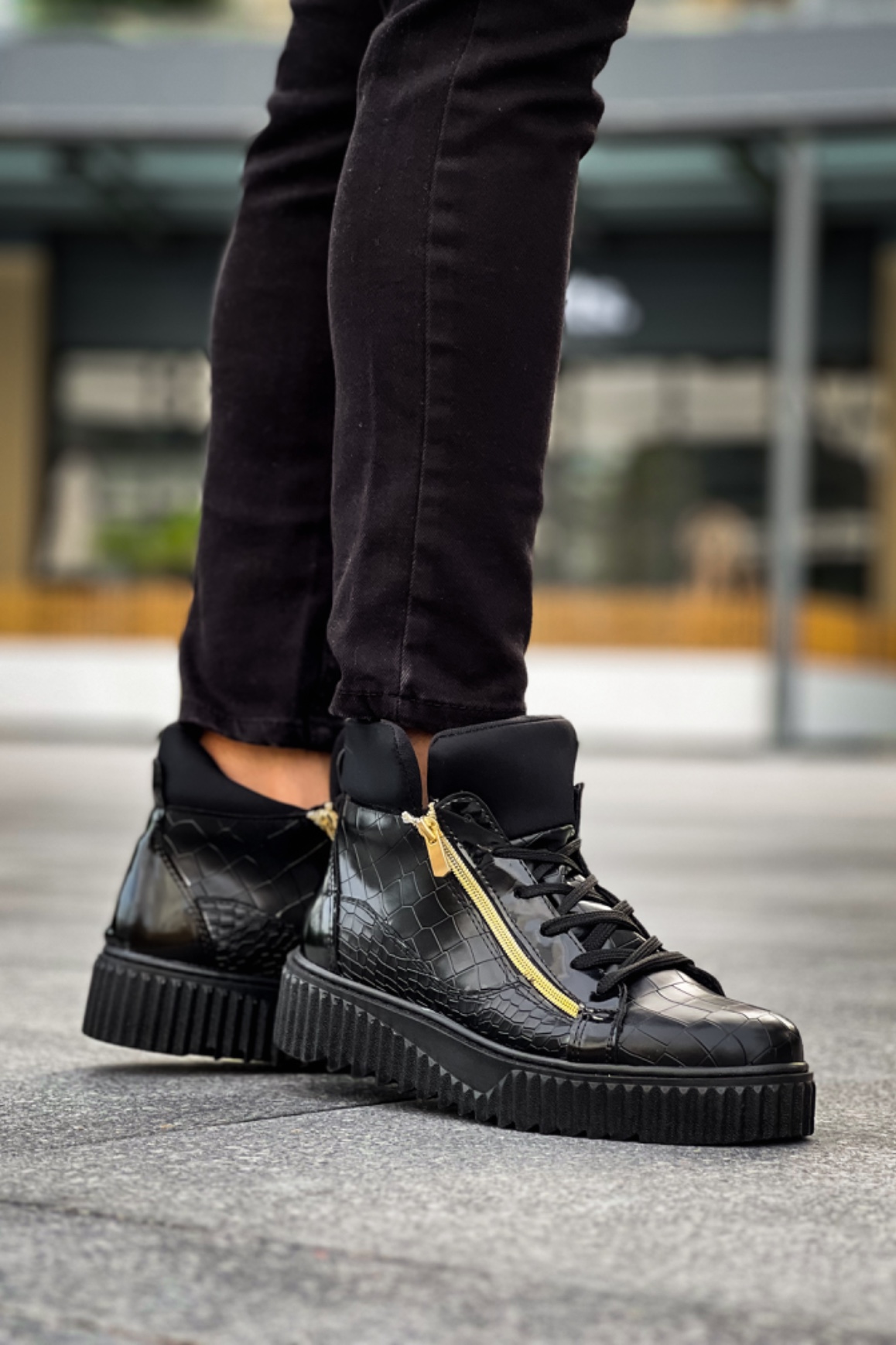 SNR-512 BOA Kalın Yüksek Siyah Taban Çift Fermuarlı Siyah Erkek Spor Bot