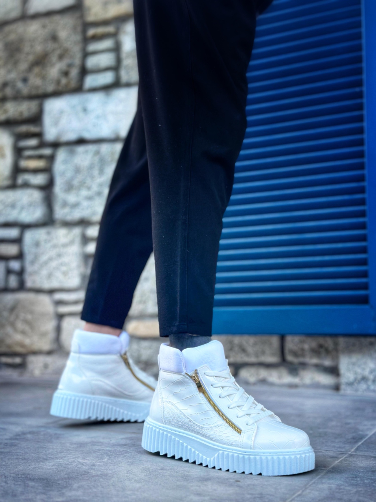 SNR-512 BOA Kalın Yüksek Taban Çift Fermuarlı Beyaz Erkek Spor Bot