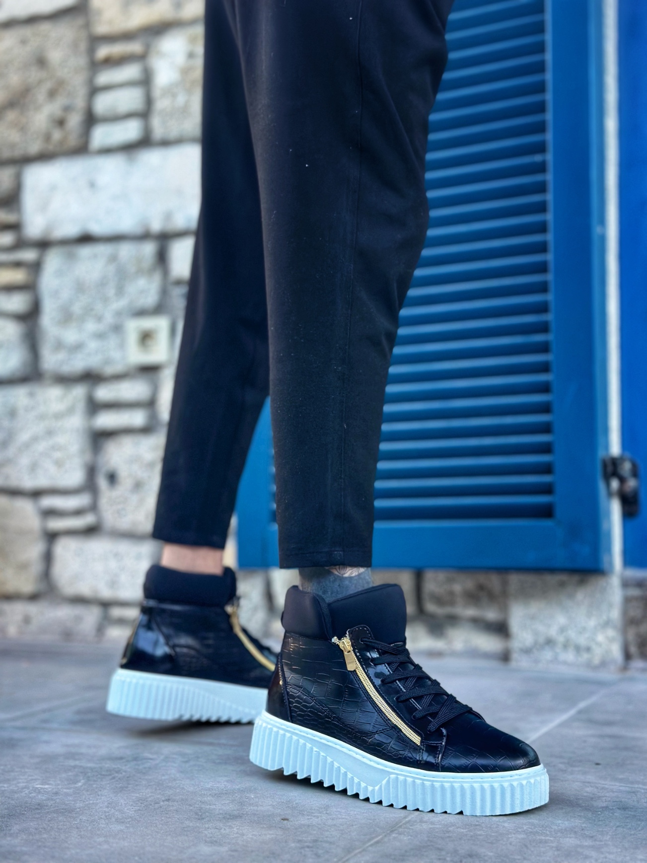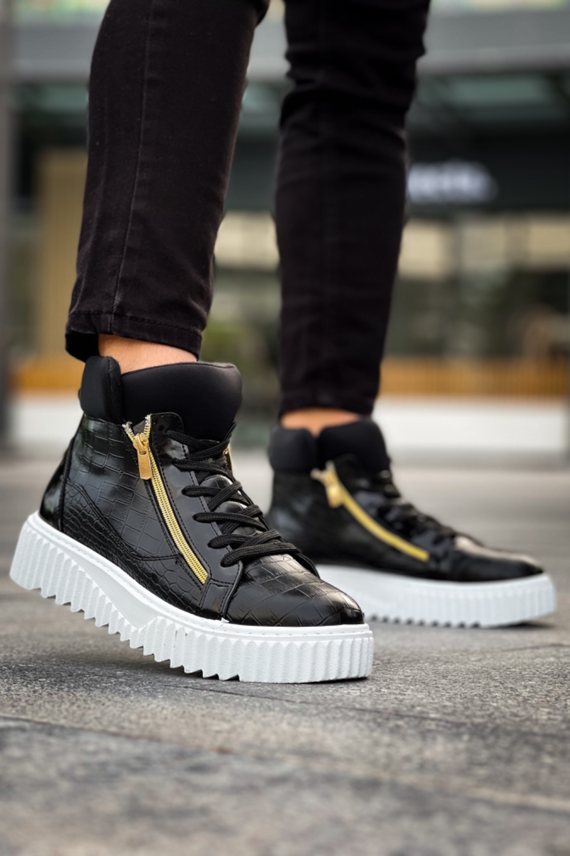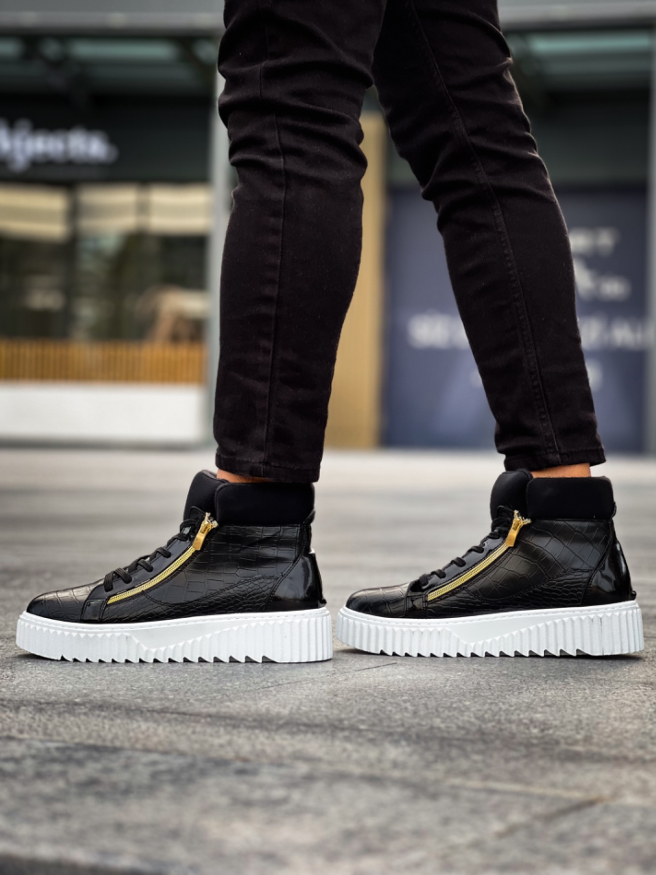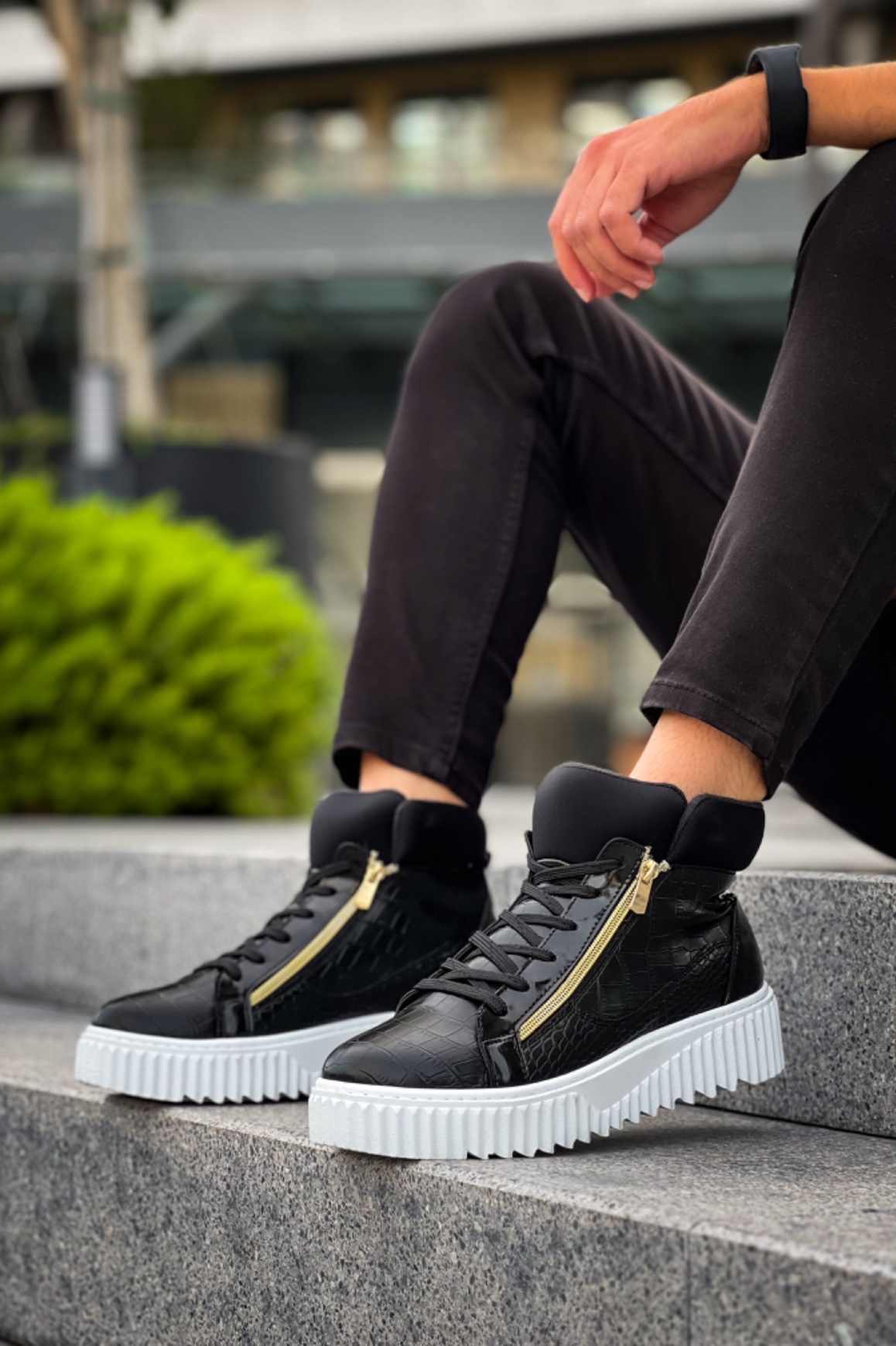 • SNR-512 BOA Kalın Yüksek Taban Çift Fermuarlı Siyah Erkek Spor Bot