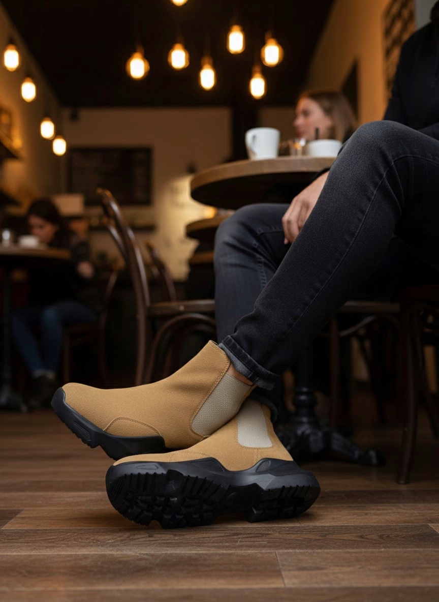BA0444 Bağcıksız Rahat Yüksek Taban Camel Erkek Spor Yarım Bilek Bot